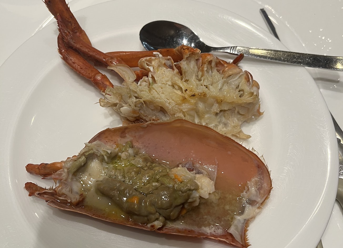 加點的澳洲野生龍蝦,龍蝦頭可以熬湯鮮甜好喝,但龍蝦肉乾煎過頭太老變得有點太乾,是敗筆。