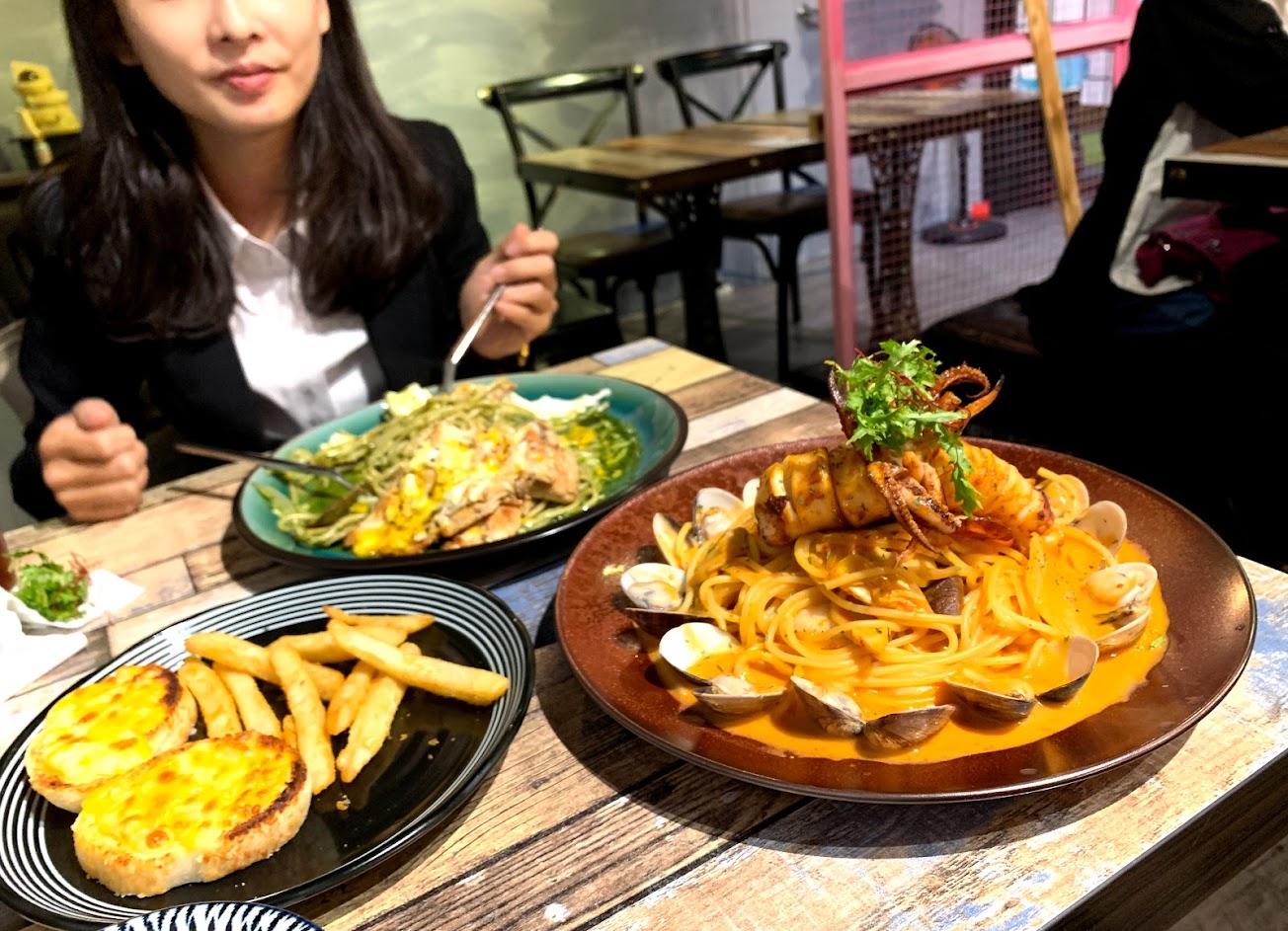 一個很網美又好吃,免費加飯加麵聚餐的瑰覓義大利麵館。