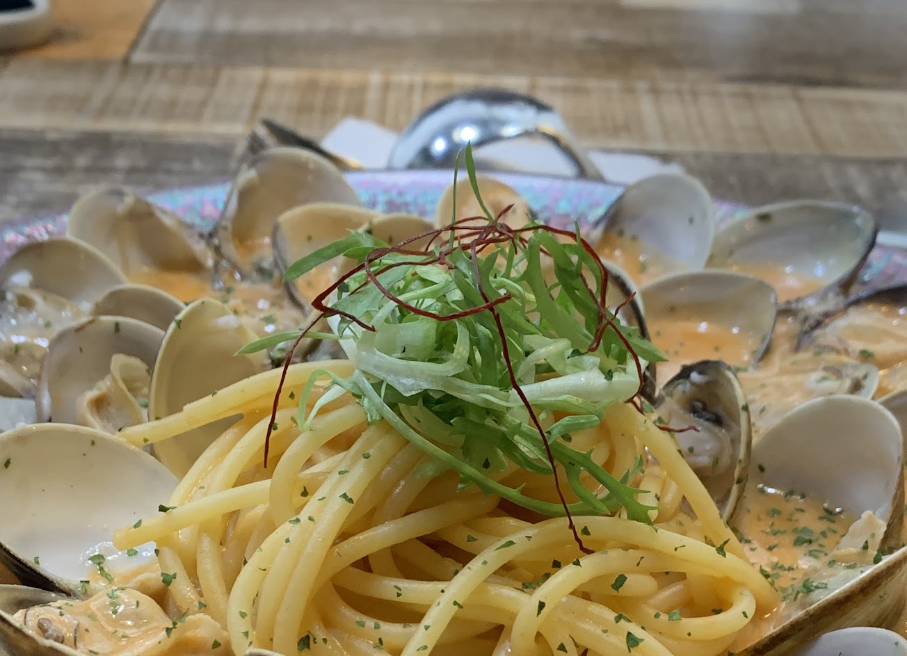 3.《很多蛤蜊橘醬泡菜義大利麵》,蛤蜊爆多,但醬汁沒有很驚艷。