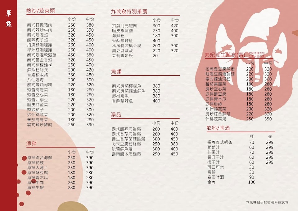 打拋豬 蝦醬高麗菜 涼拌海鮮 泰式奶茶 羅望子茶