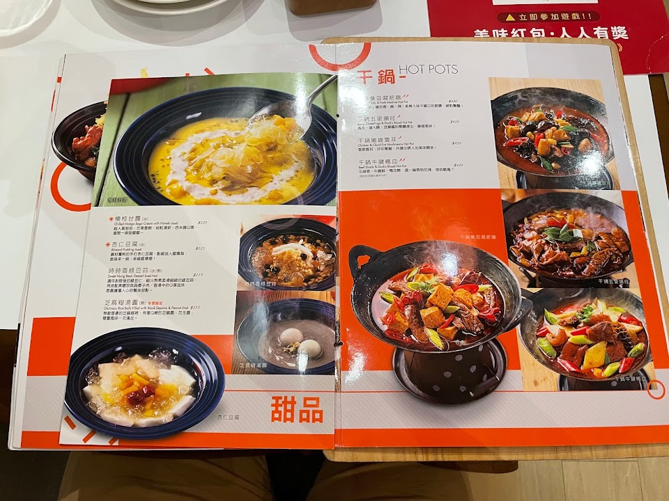厚煎菜脯蛋, 鴨血腸旺干鍋, 剝皮辣椒雞湯, 銀芽薑絲炒大腸