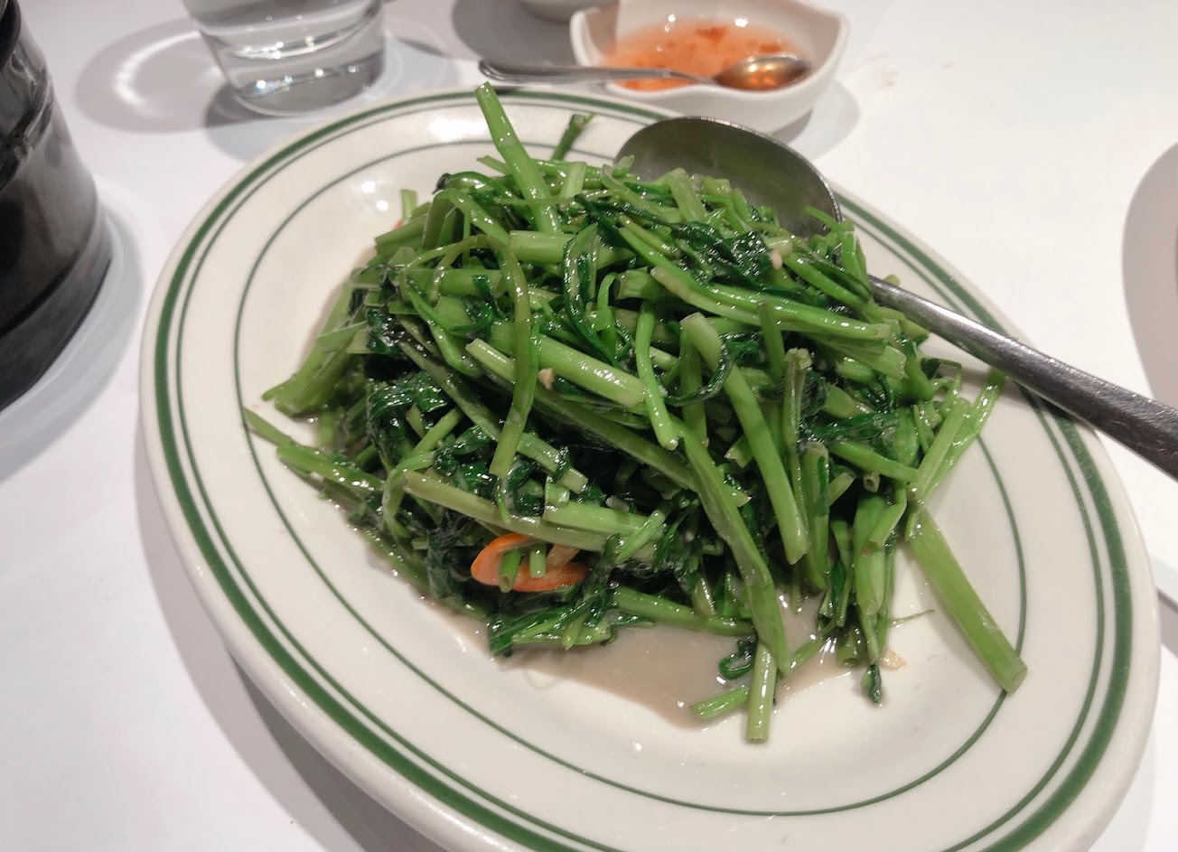 高麗菜,炒的清脆好吃,但會加培根炒,如果不喜歡加工食品可請廚師不要加