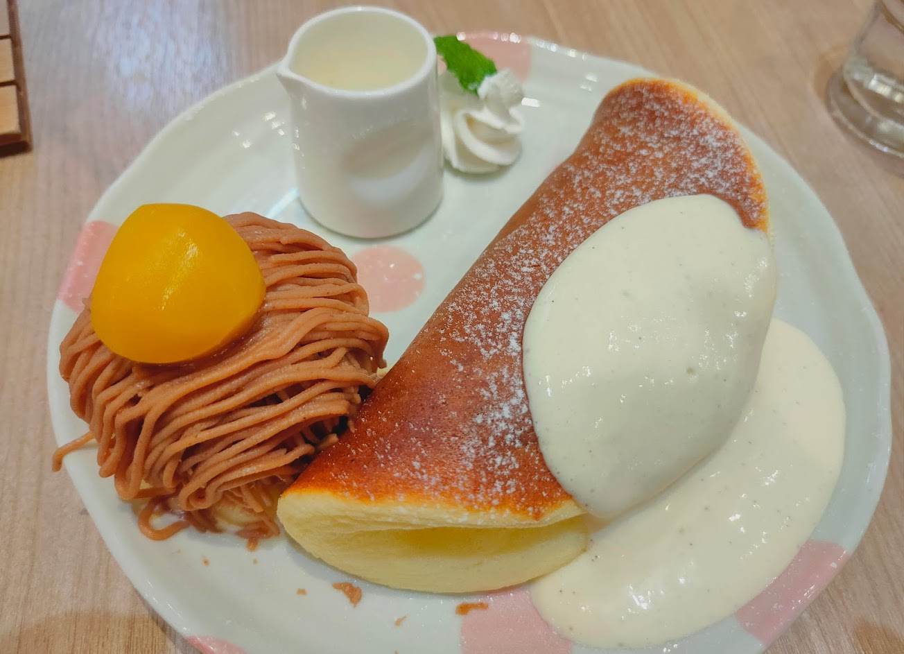 蒙布朗冰淇淋鬆餅也很美味,微熱的鬆餅搭配冰淇淋一起吃真的是絕配!