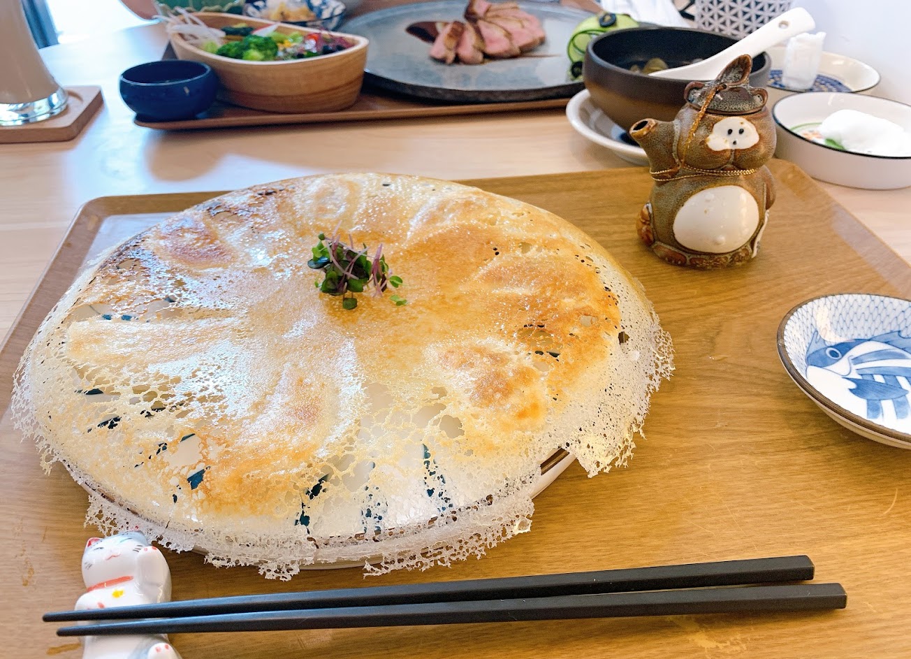 身為平常偶爾碰碰料理的小廚娘,真心感受到這間店的用心,每個主餐都會搭配不同的配菜,就連沙拉的醬汁也不同於他人沖,且充滿層次,鴨胸肉所配置的醬料更是以甜麵醬的味道,帶出日式的味噌味道,不會為了特別而突兀。 ps.我手腳比較笨,打翻了煎餃的醬料🤣但店員很快就幫我處理好了❤ …