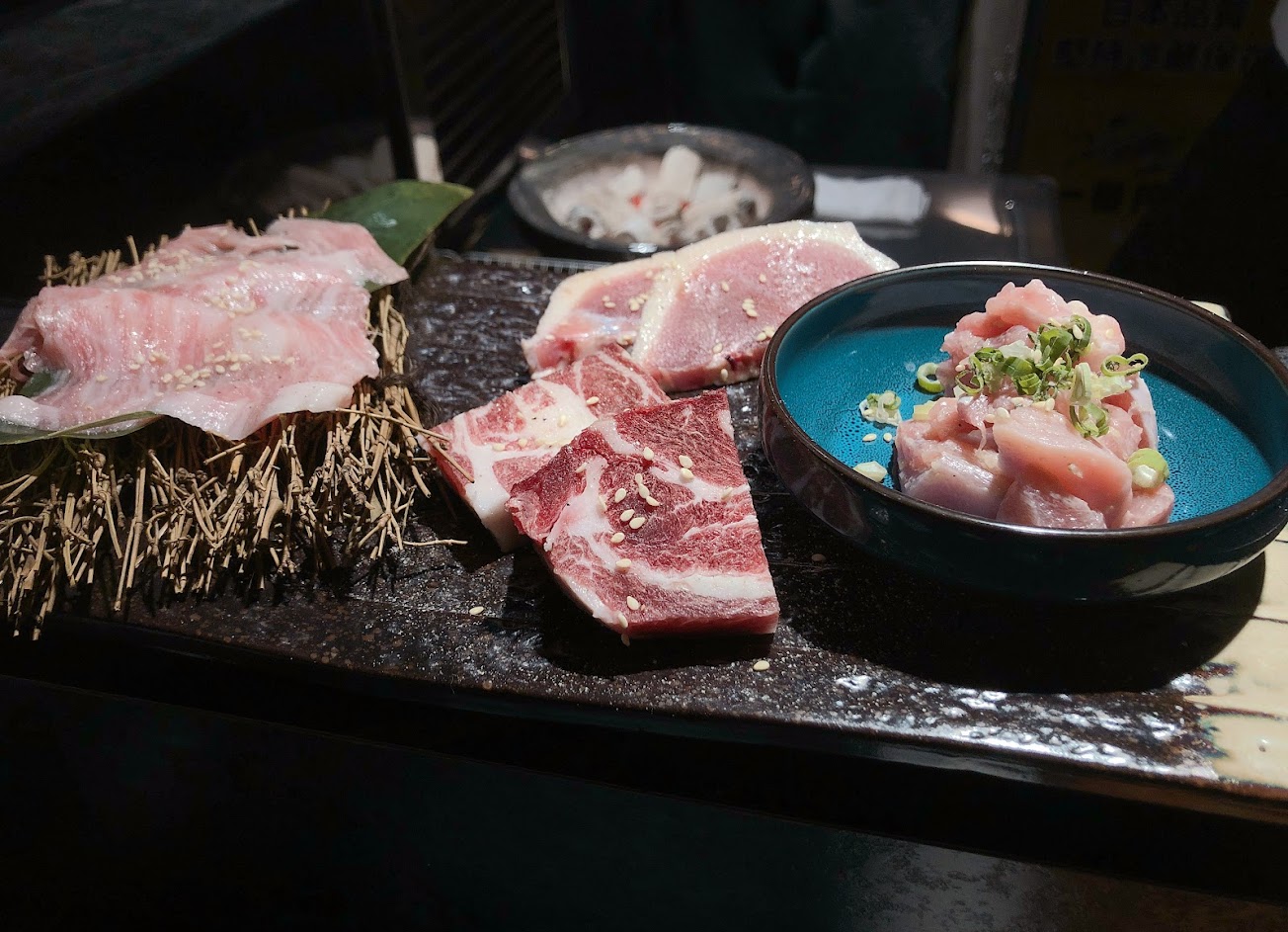 開始享受頂級的燒肉饗宴吧! 🎈漬物拼盤 柚香蘿蔔 有淡淡的柚香,吃起來脆脆甜甜 韓式泡菜 酸酸辣辣好涮嘴 🎈芝麻生菜沙拉 醇香的胡麻醬 搭配滑溜嫩豆腐與爽脆的生菜 還有一些壓碎的花生增加口感 很清爽 hen好吃唷! 🎈越光米飯 粒粒渾圓飽滿很Q彈 #專業飯桶公主說這是好吃的飯 重頭戲來溜! 首先登場的是 ⭐️招牌鹽味和牛牛舌 稍微帶點粉嫩的顏色 雖是薄片 軟嫩中卻不失Q彈脆脆的口感 ⭐️A5老饕蓋肉 兼具油花、甜美、多汁的部位 油花分布像藝術品 肉質細緻入口即化 佐上一咪咪哇沙咪提味 滿滿的肉汁在嘴中爆發 太迷人了! #公主的最愛 ⭐️A5和牛肋眼心 牛油香氣的鮮香不膩 搭檸檬整個味道更有層次了 甜嫩口感好療癒 ⭐️澳洲和牛肋條 外焦香裡面鮮嫩多汁 完全吃不出有筋膜 柔嫩中略有嚼勁 ⭐️A5和牛板腱肉 肉質細緻多汁 口感相對比較結實 ⭐️澳洲和牛橫膈膜 特殊香氣與清爽口感 微微脆口Q彈 ⭐️A5薄切沙朗 偏扎實卻完全沒有硬柴感 油脂跟肉汁還是很豐富唷! 薄切A5和牛紐約客 肉質略帶嚼勁 生蛋黃增添滑順口感 肉質更加透出甜感 好像在吃烤的壽喜燒唷!