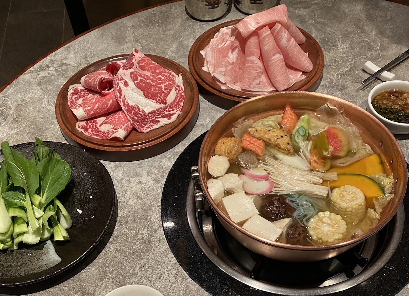 我們選了一個火鍋昆布柴魚湯底和日式壽喜燒~ 火鍋湯底很清淡後面店員會做粥 壽喜燒隨餐會多一顆蛋,但無法做粥。