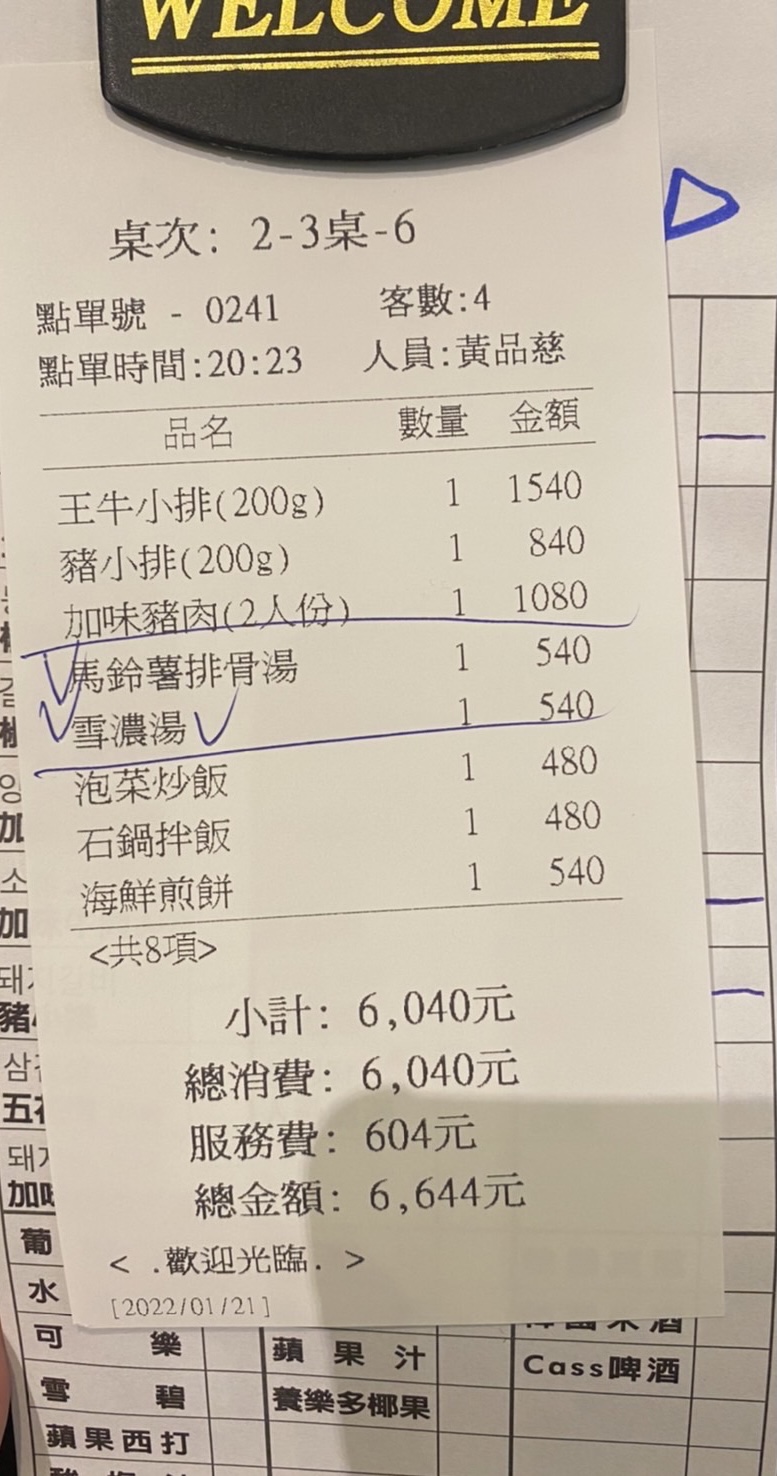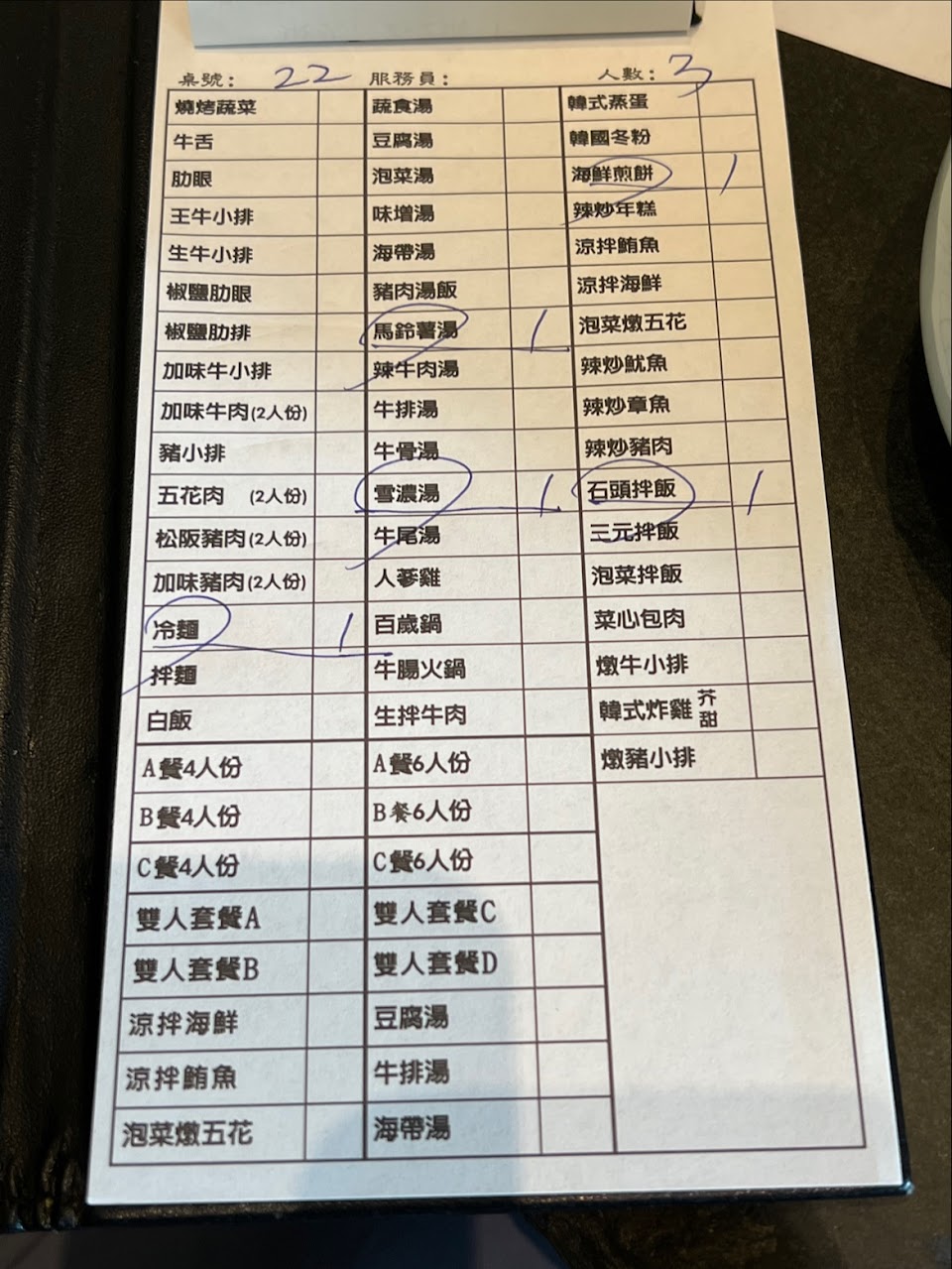 喜歡的餐點是:生牛小排、冷麵、石鍋拌飯