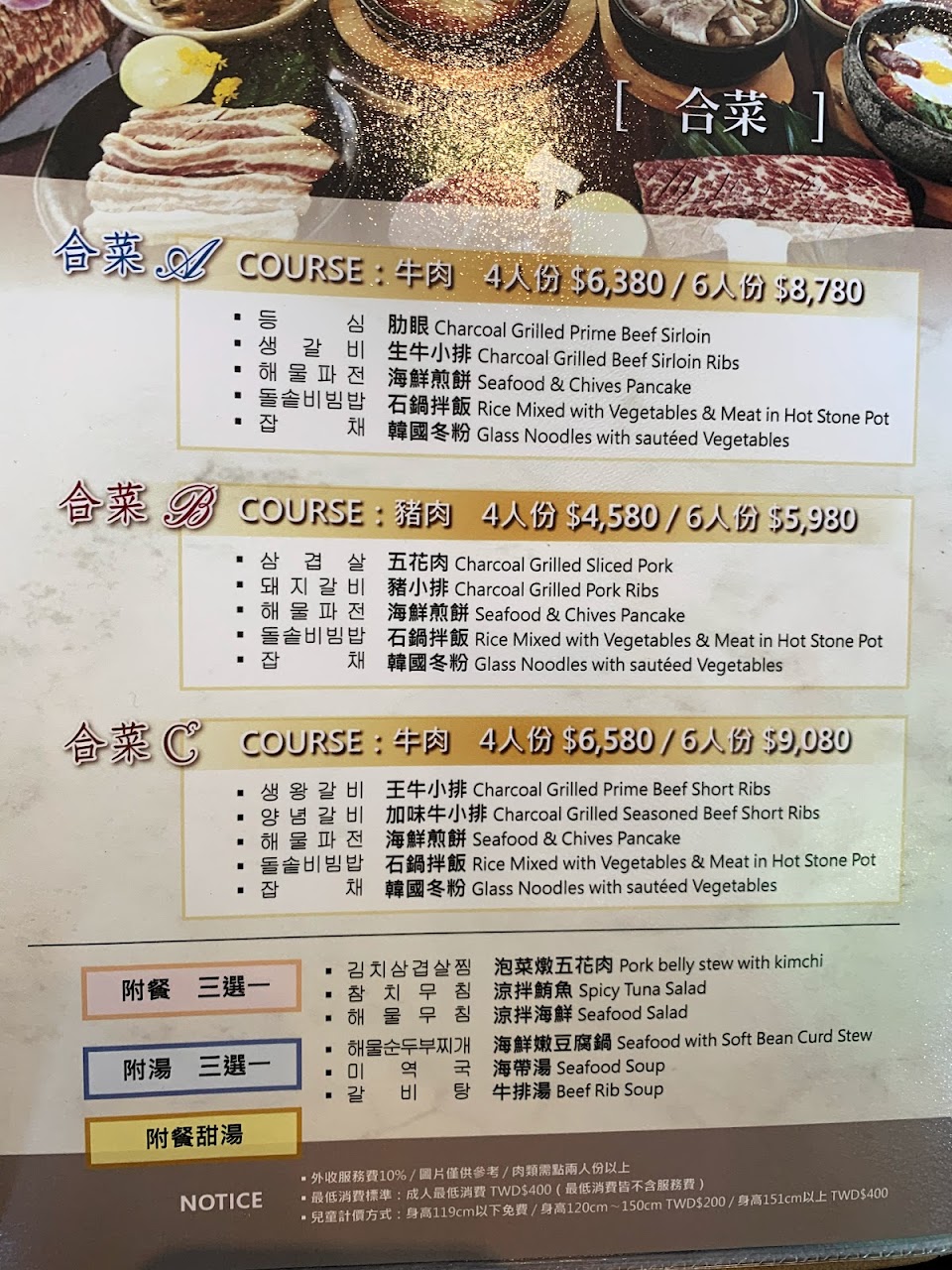 極致套餐的肉是兩個人份的(400g),副餐非常豐盛,海鮮煎餅超厚實,豆腐鍋很好吃!還有汽水跟冰淇淋。