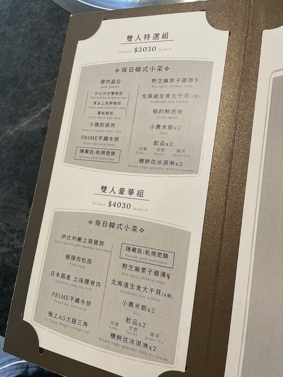 整餐吃下來體驗很好、肚子很飽!小缺點是套餐內容大多燒肉類跟其他食物含量各半,例如韓式炸雞、海鮮類⋯等等的,所以以吃燒肉心態來吃的話可能會小小失望。