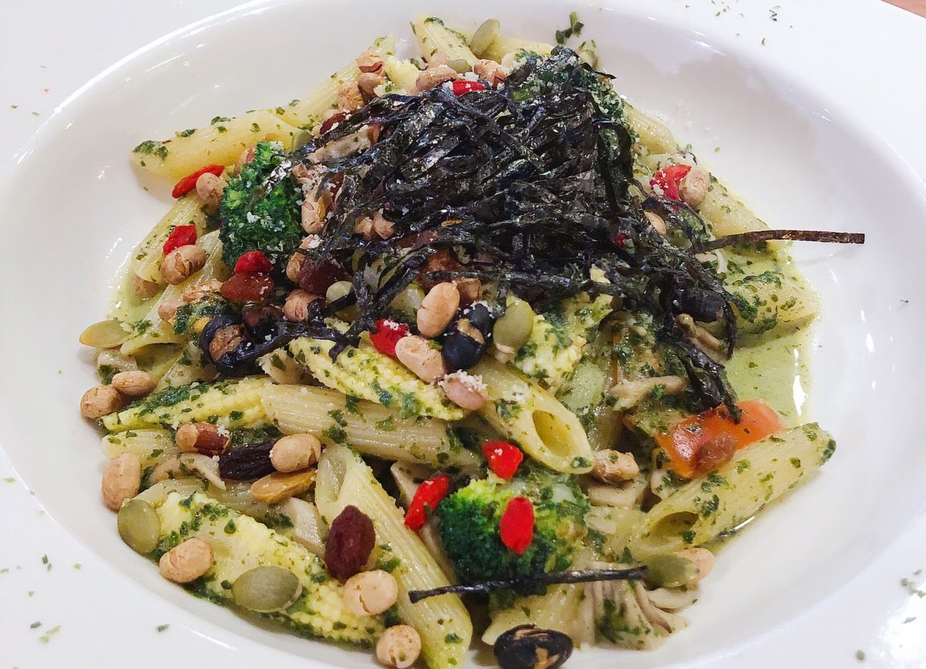 食物不錯吃,怕吃蔬菜的人可以試試青醬野菇堅果義大利麵,味道重的課業蓋過番茄花椰菜之類的菜味