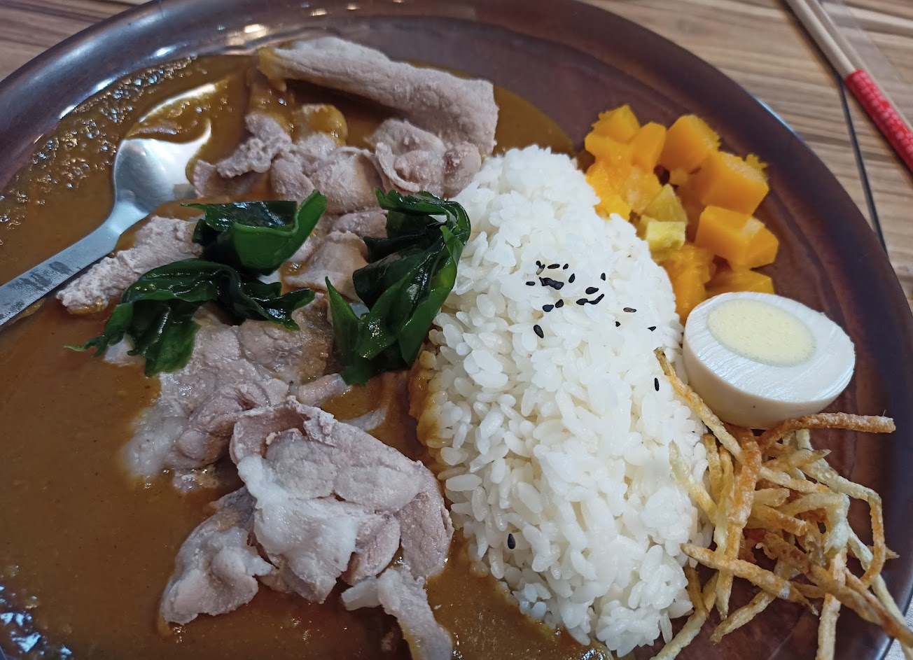 咖哩是日式咖哩不辣,但我個人覺得偏鹹,可能我吃的比較養生吧… ?