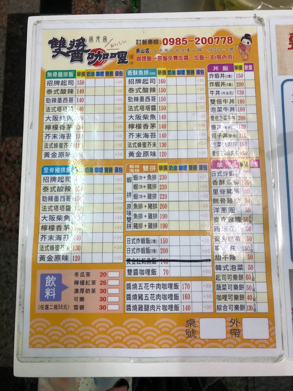 2024最新在地推薦餐廳的菜單_雙醬咖喱-東山店的菜單、圖片