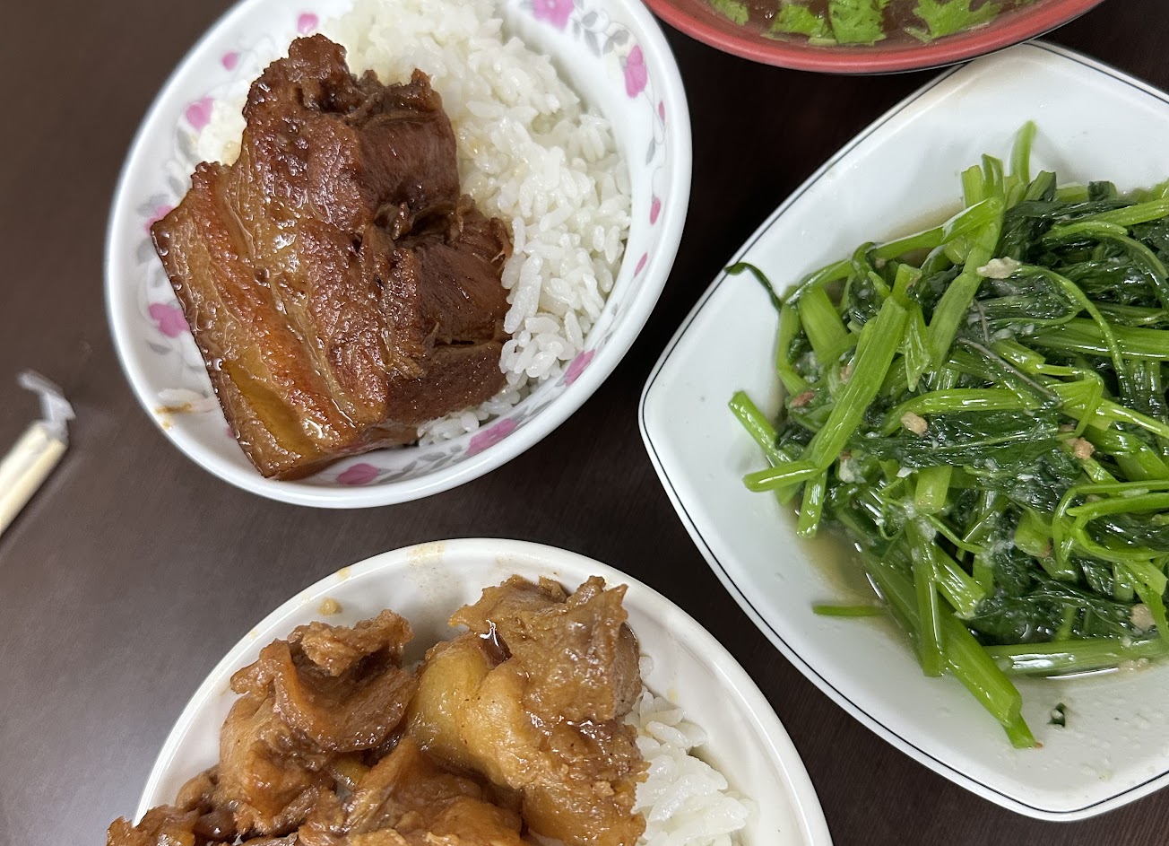 跑完中央公園馬拉松,身體正餓來到這家店,照理說應該是會大克一頓,但卻不是如此。我點了爌肉飯偏瘦,爌肉的瘦肉會有柴的感覺,但肥肉是OK的。因為是點便當,當天配菜有滷竹輪跟白菜滷,我也順便點了一碗苦瓜湯,到最後每一樣都沒吃完,我想原因應該是太鹹了,鹹到我剛跑完長跑,身體正飢餓的情況,我卻還是吃不完。