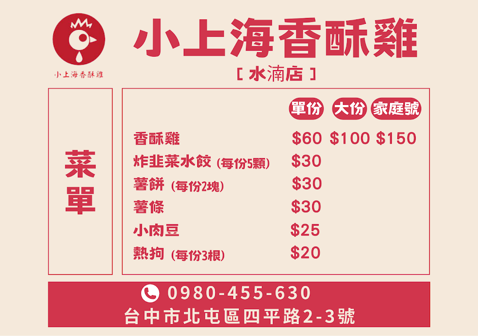 2024最新在地推薦餐廳的菜單_小上海香酥雞 【四平路美食 |宵夜|鹽酥雞|小吃推薦】的菜單、圖片