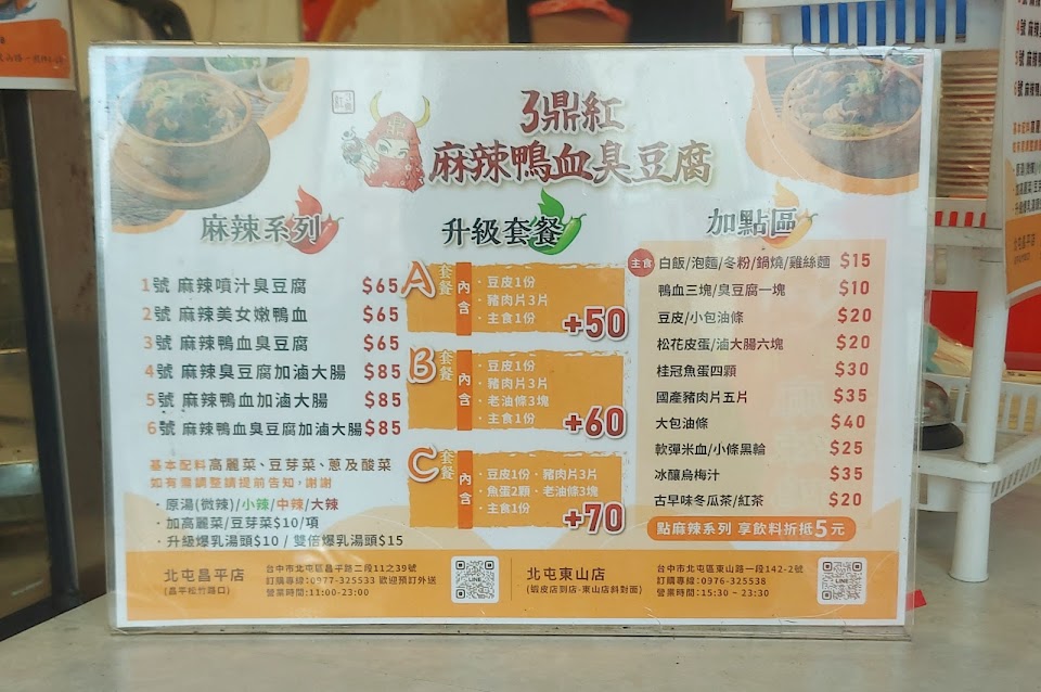 2024最新在地推薦餐廳的菜單_3鼎紅 麻辣鴨血臭豆腐-北屯東山店-北屯必吃臭豆腐|必吃麻辣鴨血|麻辣鴨血推薦|平價小吃|巷弄美食|必吃宵夜的菜單、圖片