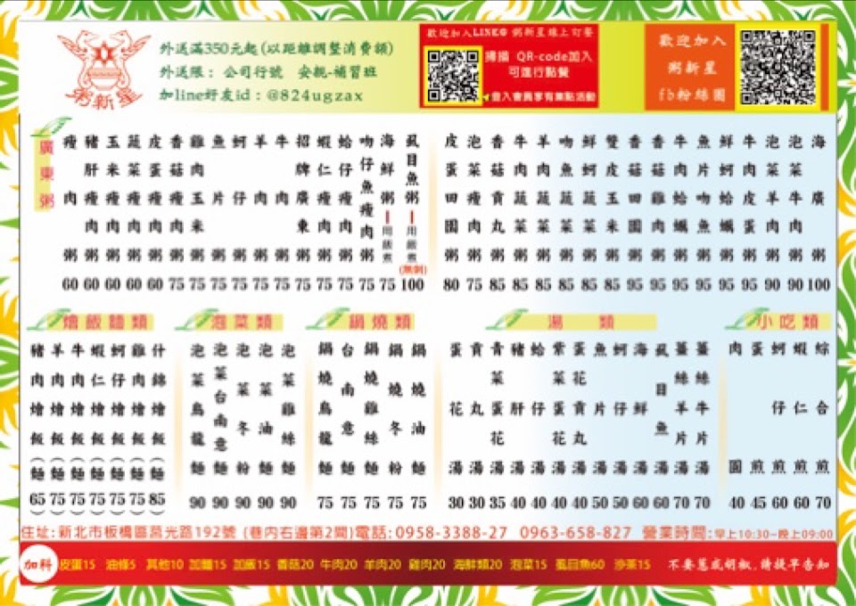 2024最新在地推薦餐廳的菜單_板橋粥新星平價小吃(廣東粥,鍋燒麵,燴飯燴麵,蚵仔煎肉圓)的菜單、圖片