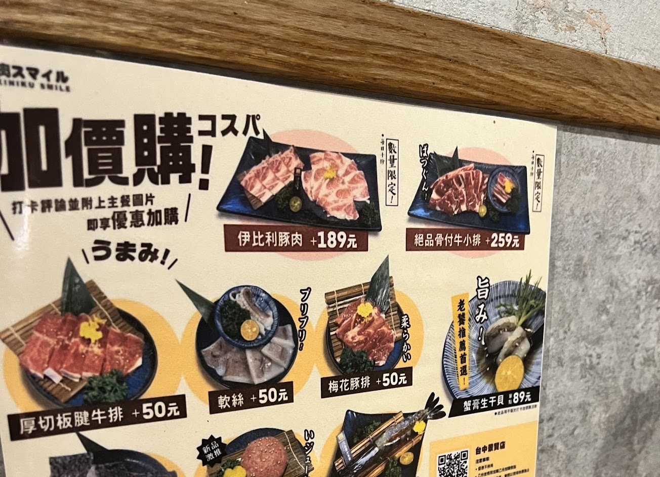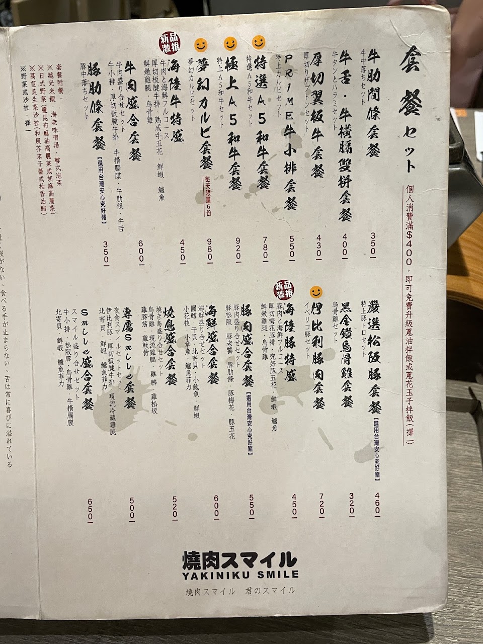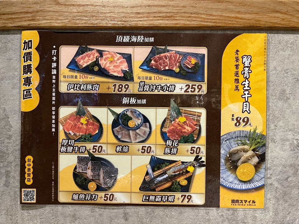 2024最新在地推薦餐廳的菜單_焼肉スマイル(燒肉Smile)台中景賢店的菜單、圖片