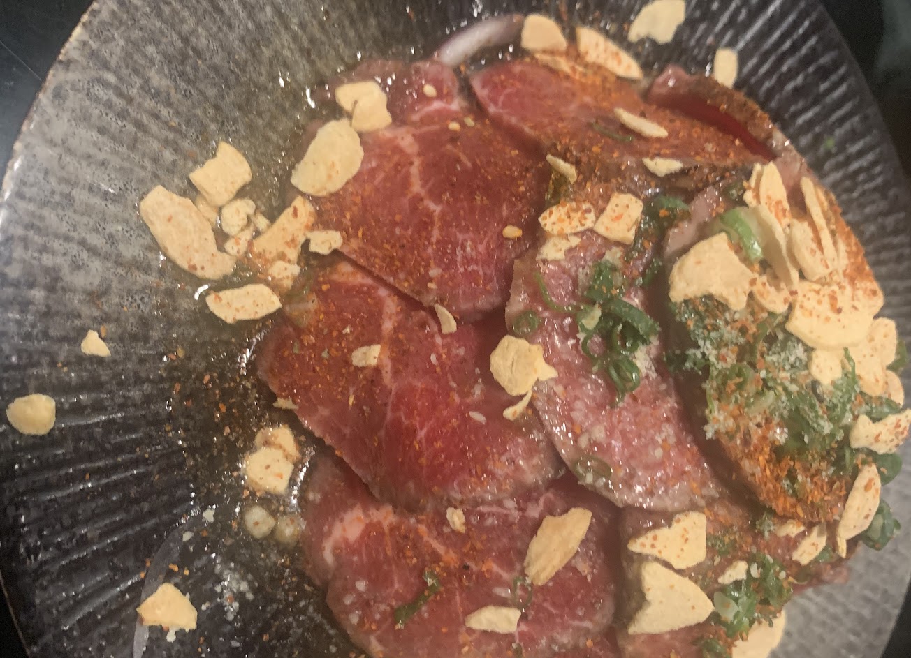 烏龍麵及生魚片是好吃的,烤肉串有濃濃的蒜味,店內座位不多,上菜比較慢,需要耐心等待
