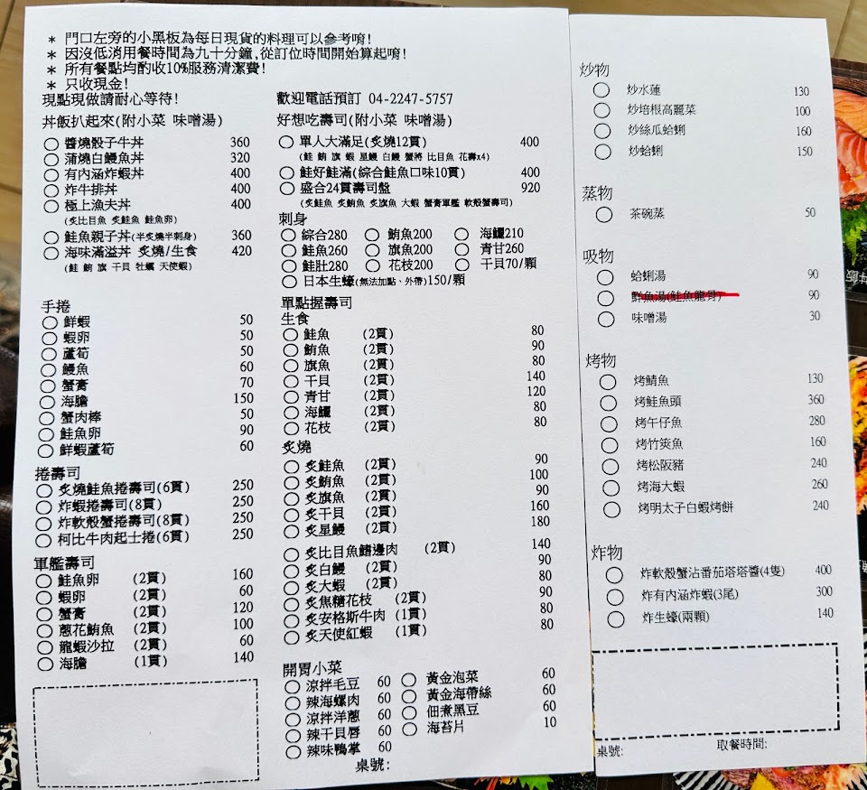 料理的手藝,跟頂級的專業的日料師父有一些差異,例如炸牡蠣,既小又沒有濕潤的口感,魚骨湯真的是只有三塊應該是要淘汰鮭魚骨煮的清湯,讓人有點無言