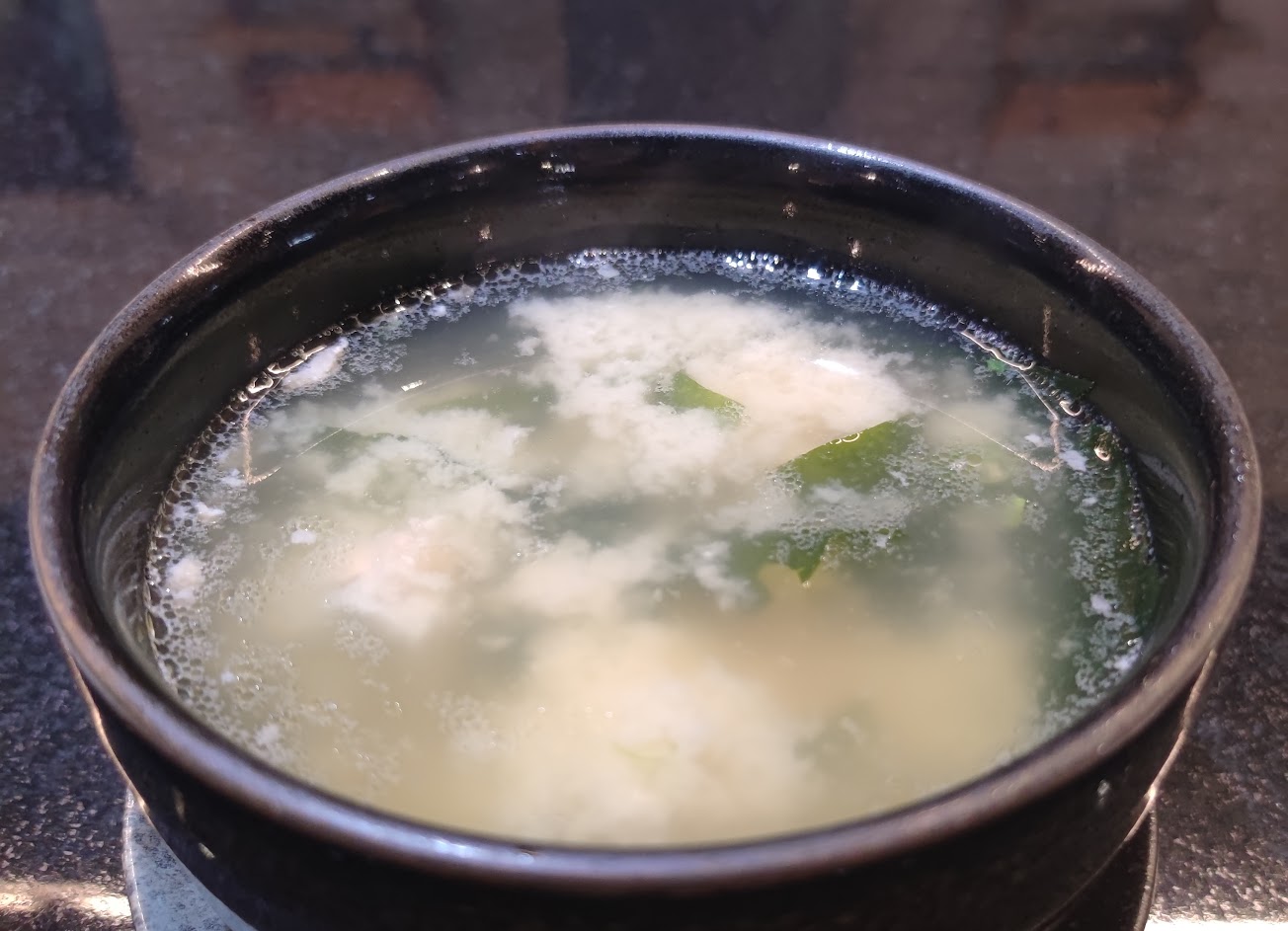 除主餐外,定食另含生菜沙拉、茶碗蒸、味噌魚湯,紅豆湯,吃完非常滿足,適合找人來餐敘或家族聚餐。