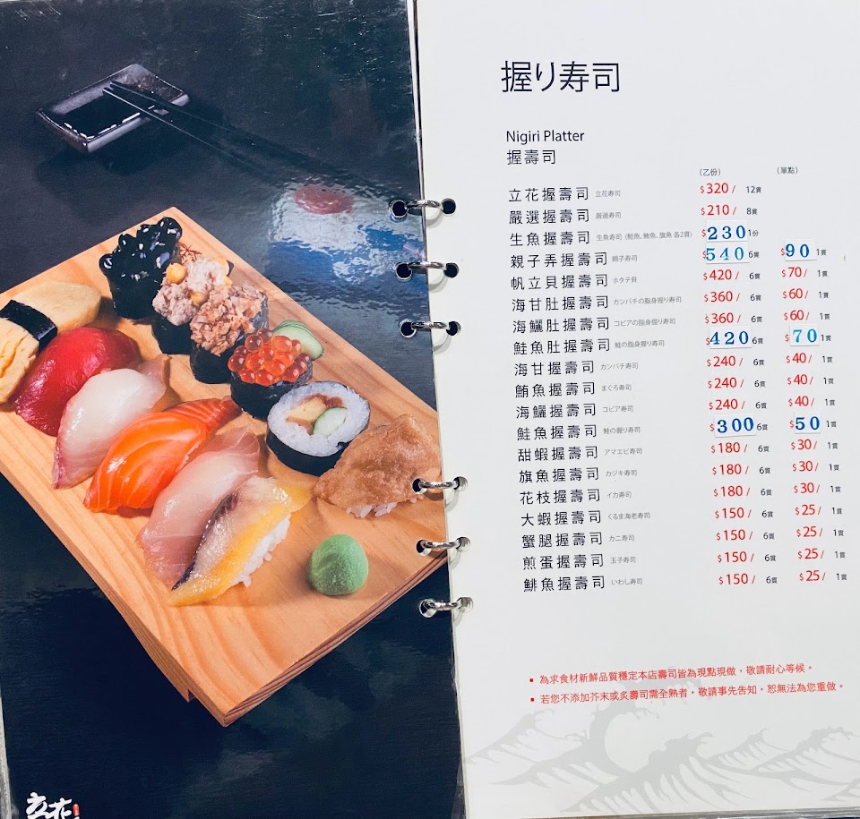 2024最新在地推薦餐廳的菜單_立花日式壽司專賣店的菜單、圖片