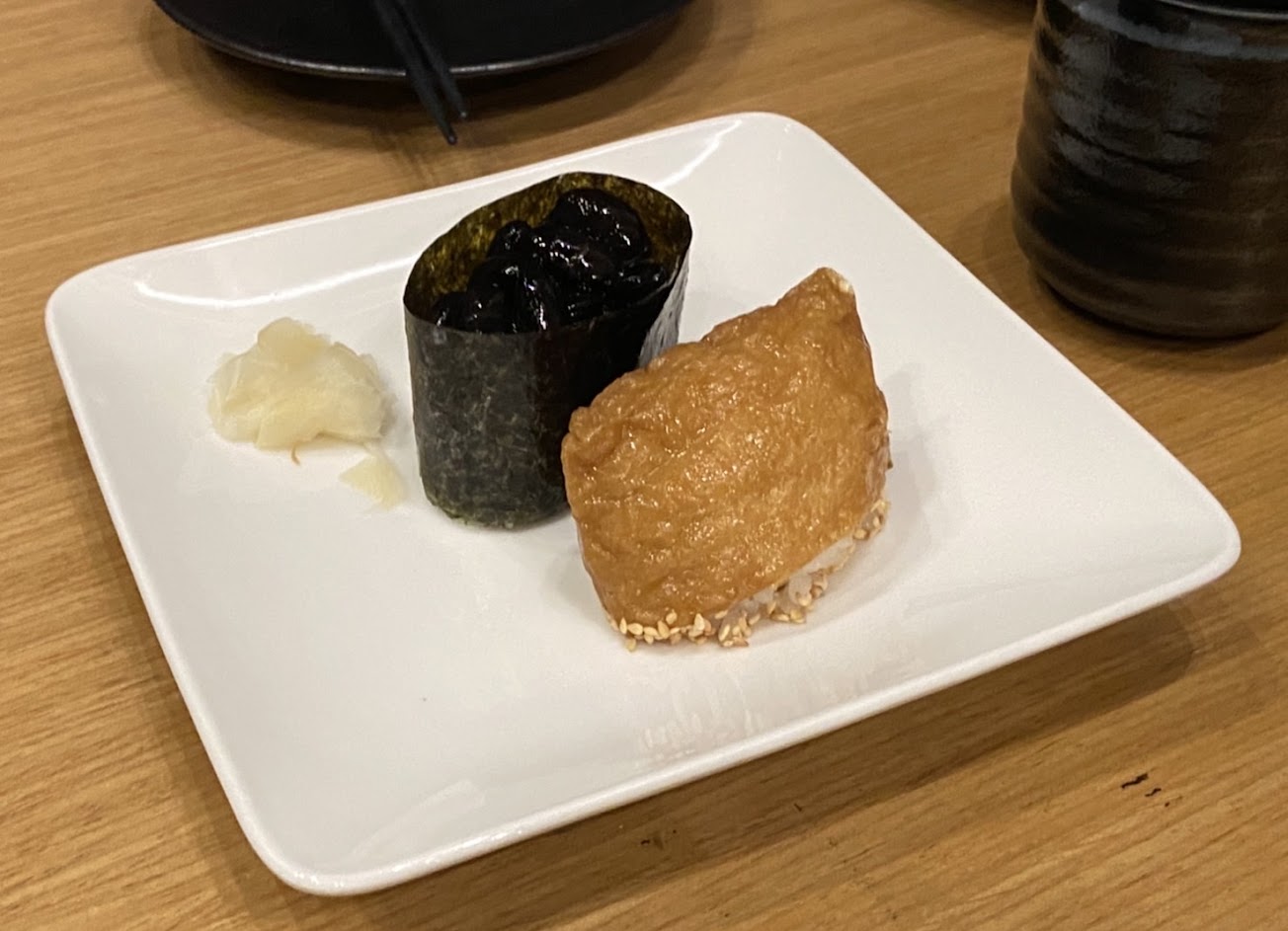 660的炙燒壽司上來有一點傻掉。豆皮壽司+一個魚壽司。兩塊。