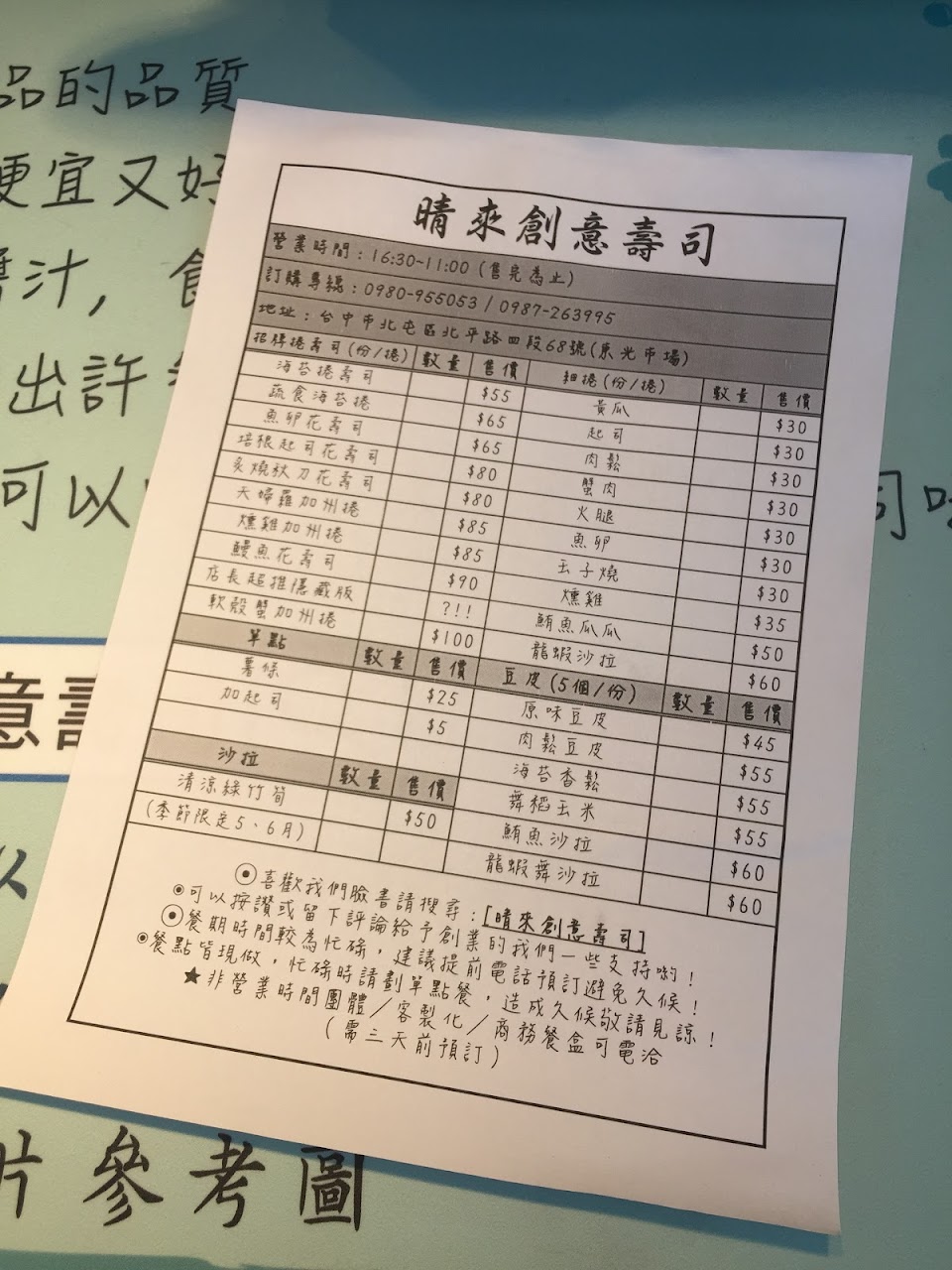 2024最新在地推薦餐廳的菜單_晴來 創意壽司的菜單、圖片