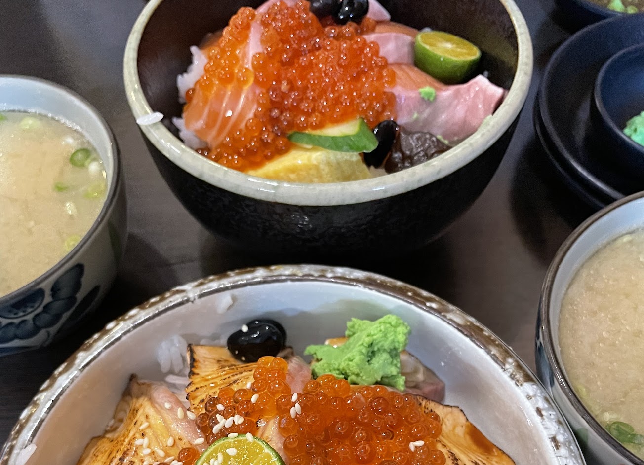 鮭魚親子凍和生魚片必點。