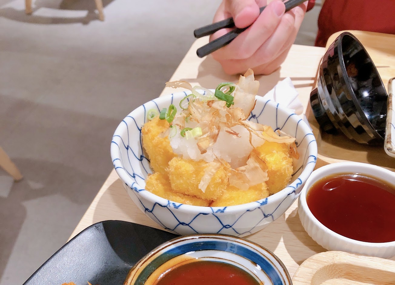 另外加點炸豆腐,有附上蘿蔔泥和醬料,整體表現中規中矩,建議趁熱吃。特別提一下,當天用餐空間內有強烈的廁所芳香劑的味道,跟餐點有些違和。整體環境乾淨整潔。