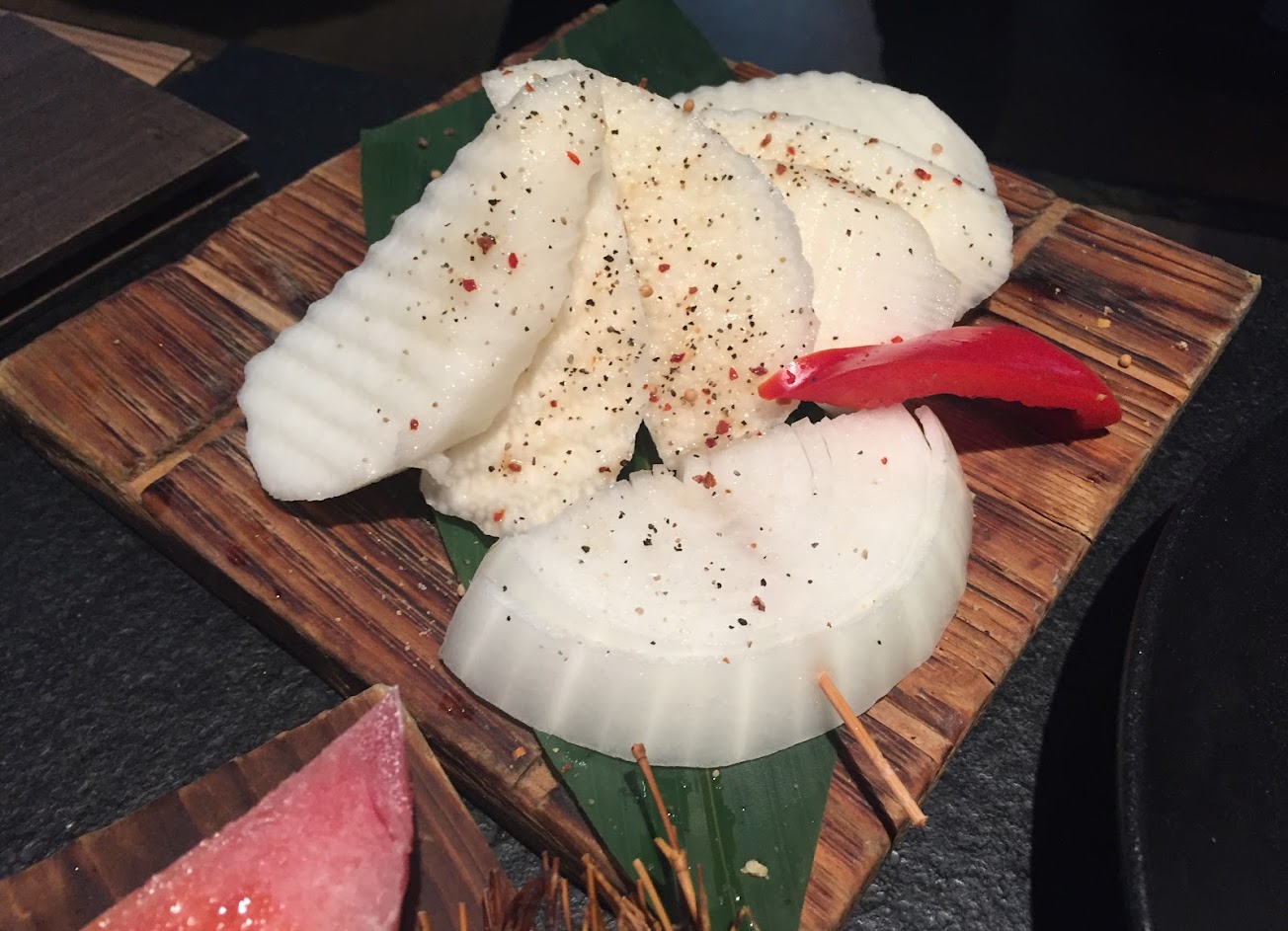 沙拉的肉是用肉乾,看到整個傻眼,牛肉和豬肉肉質普通,海鮮的透抽新鮮,結帳時還要被收服務費,只有把烤食端過來也要算服務費,這覺得不合理