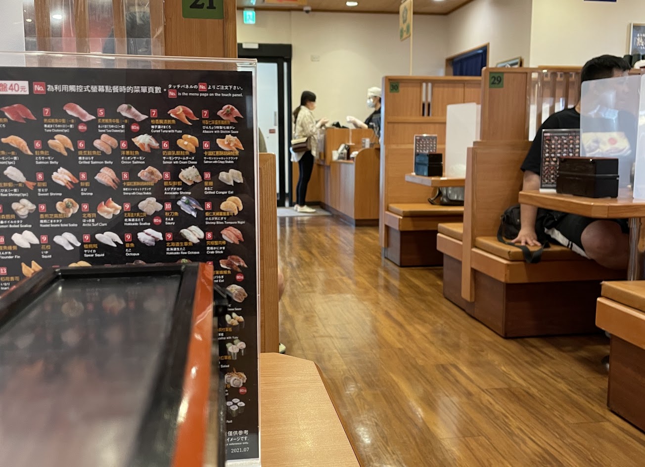 因爲防疫,迴轉台上沒有壽司在那邊轉來轉去了