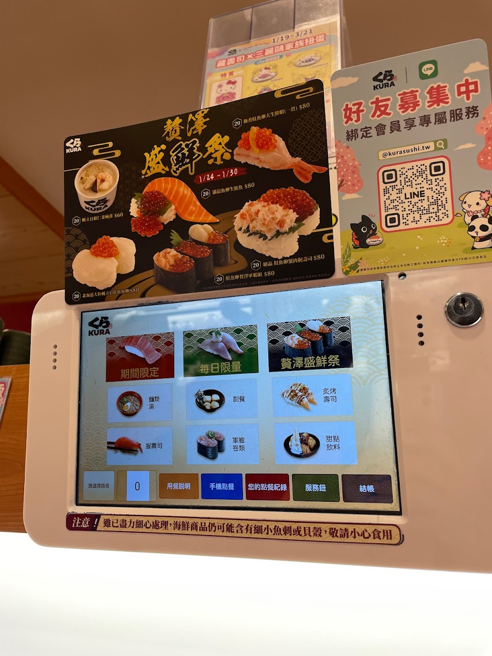 這次來藏壽司為了卡娜赫拉來的,結果四個都是紙膠帶氣死?但有吃到還是很開心,基本上藏壽司扭蛋有一個規則就是二十盤一定有一顆,藏壽司東西都不錯吃,蒸蛋跟甜點(尤其是豆乳甜甜圈超好吃)都非常有特色,附近就有停車場,可以店內折抵,但一桌只能折抵一台,建議假日要來吃時都要先預約要不然現場排要排很久。