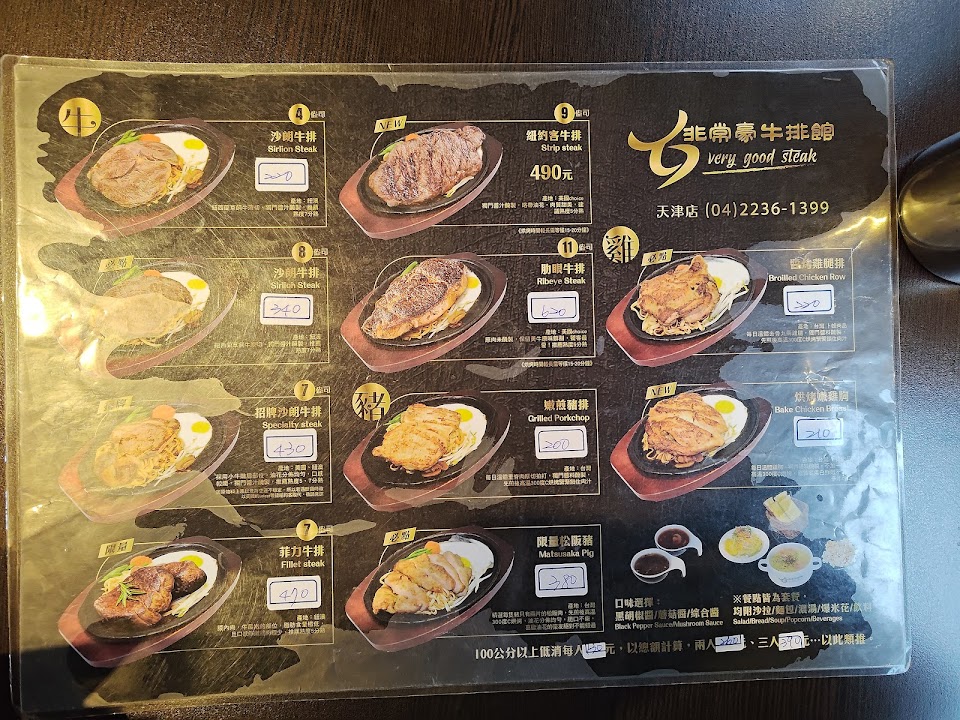 美味度普通,牛肉都是醃漬過的,很難吃出原汁美味,所以點高級點的肉跟一般牛肉,吃起來差不多,差別在肉的厚度而已,如果要吃較高層次美味的牛排,這家可能無法滿足您的味蕾,畢竟人家是走平民價格,但是價格親民很適合小資族或學生,環境衛生不錯,店員都會立即整理桌面,氣氛佳,整體評分75分