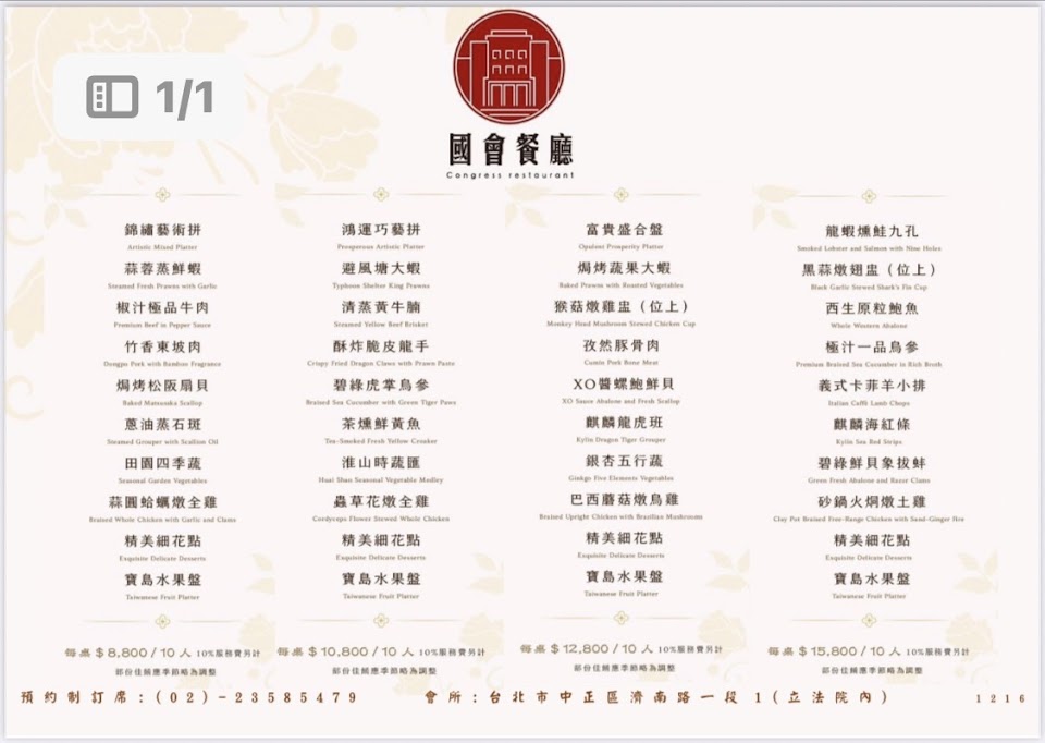 2024最新在地推薦餐廳的菜單_國會康園-立法院餐廳的菜單、圖片