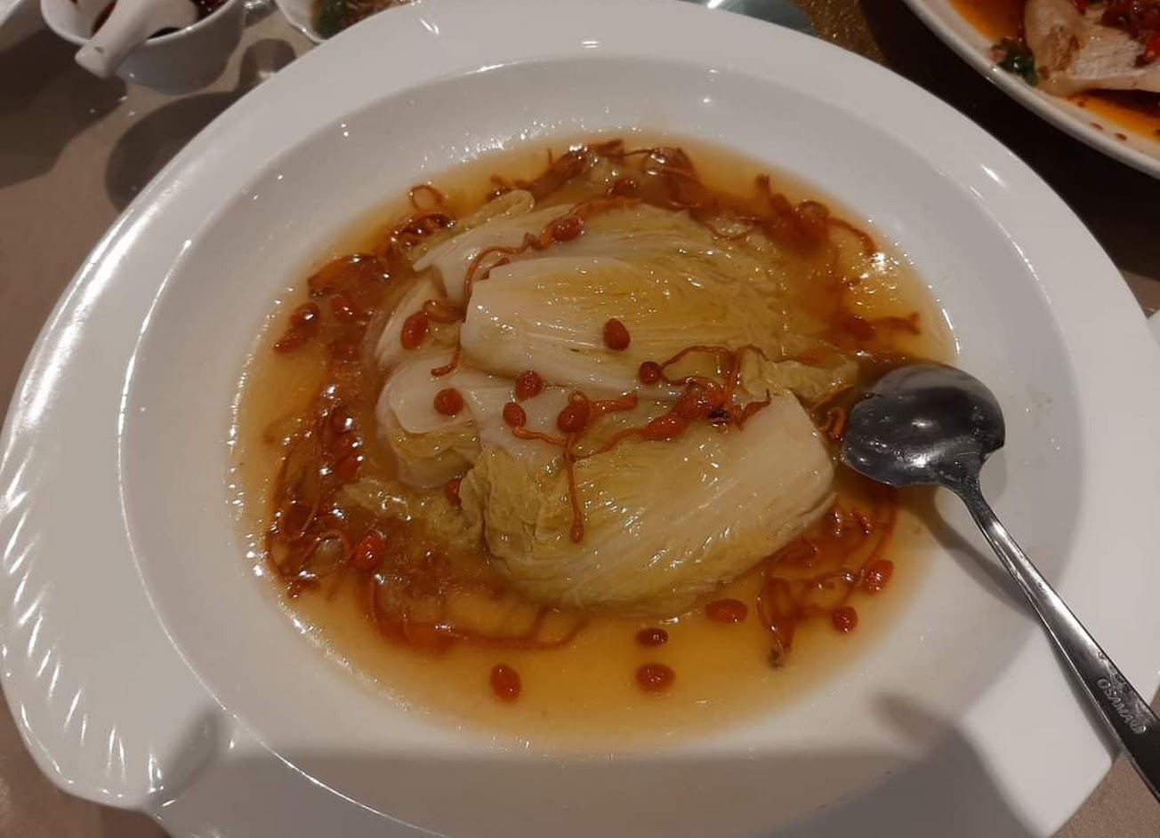 東坡肉普通不夠軟嫩,亮點是燒餅。高麗菜普通,什錦鍋普通,裡面的雞肉超級老,我直接吐掉,蝦子不新鮮,沒甜味。還有一盤炒蝦仁,蝦仁是脆的!!你給我沒有怪異處理的真蝦可以嗎???糖醋排骨,肉筋不夠分離,不Q,硬到不行,差勁。炒飯中上,三人花了2400,一人吃了800,這種表現,不合格。還好人員還算親切。