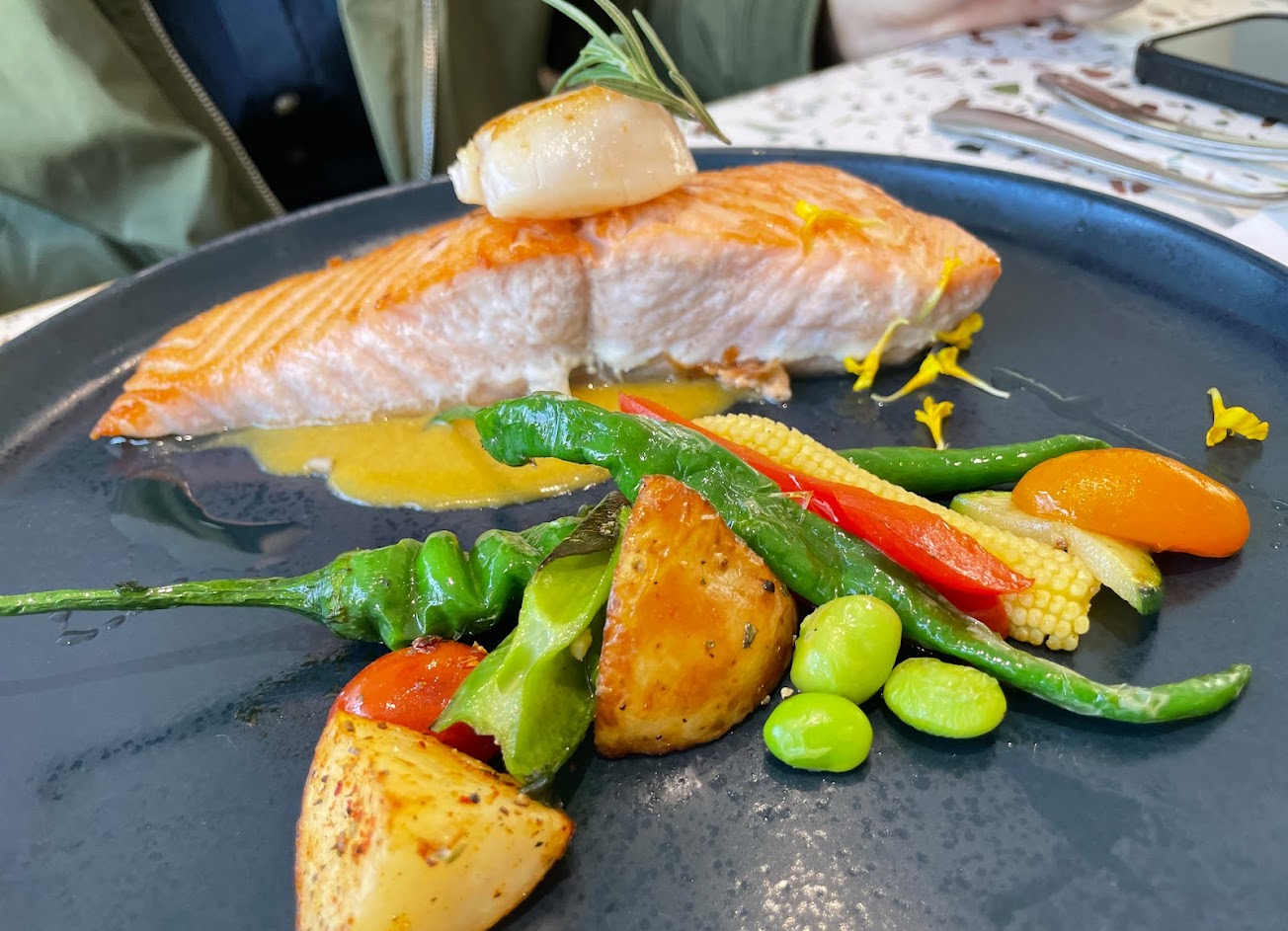 我覺得主餐真的非常好吃……雖然雞肉有些地方比較柴,但大部分都是嫩的,而且嫩到很誇張,超級多汁,魚肉的話全部都非常優秀!