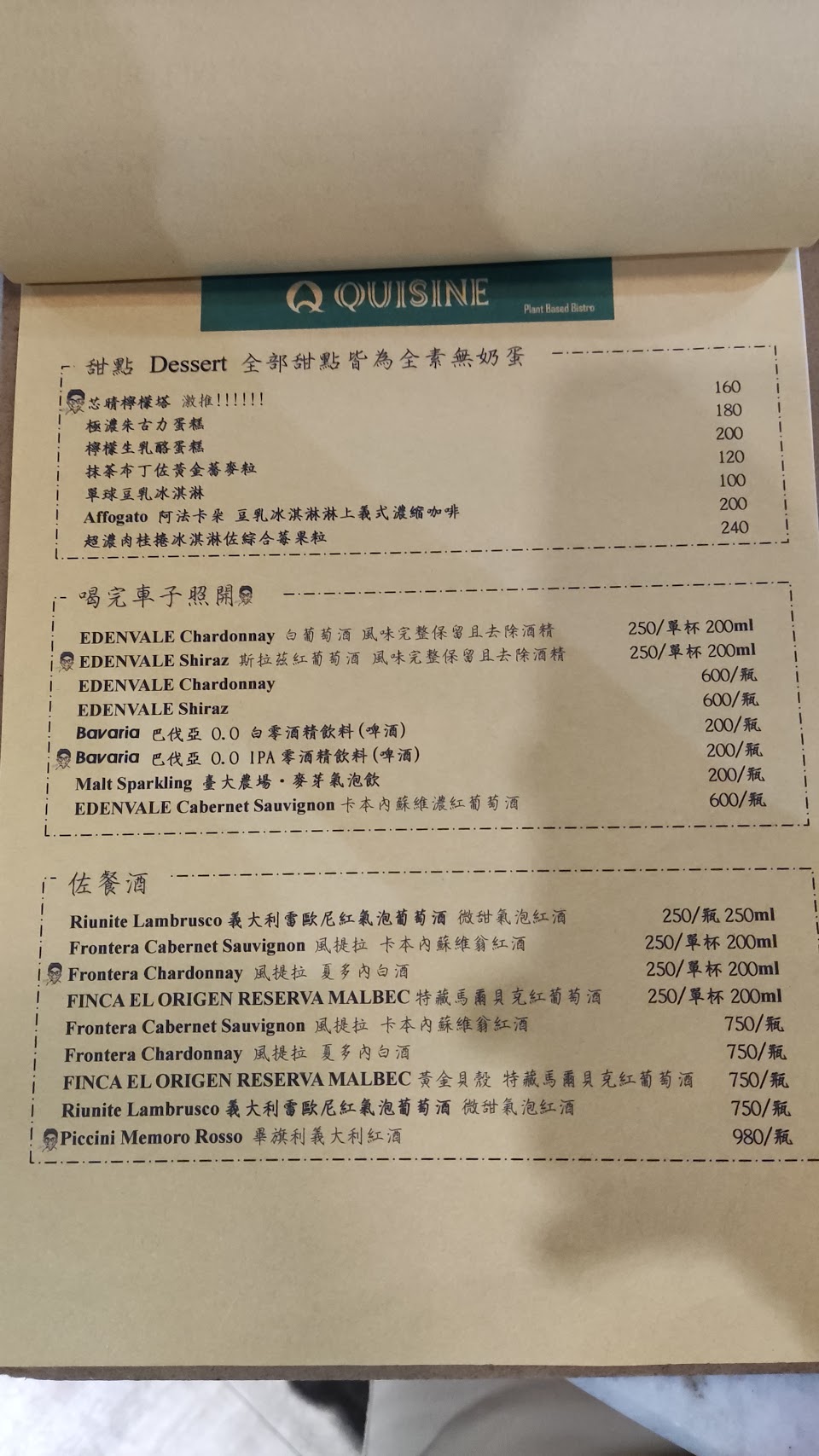 2024最新在地推薦餐廳的菜單_Quisine 菓芯蔬食餐酒館 |北屯素食推薦|台中素食餐廳|義大利麵|燉飯|甜點的菜單、圖片