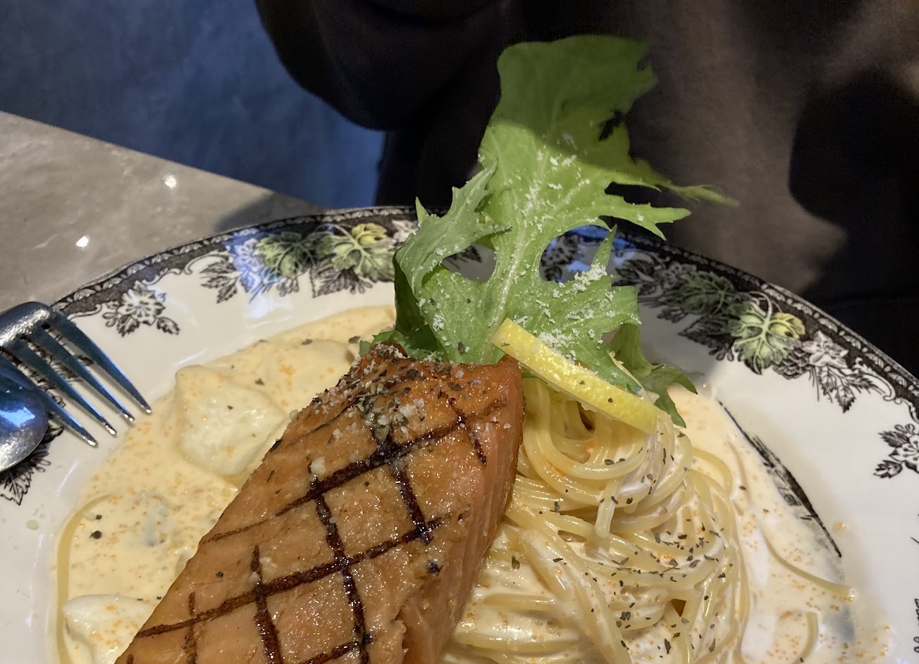 因為過年廚師也隨便料理,蛤蜊炒到很乾都脫殼了,還好意思擺盤上桌?不該重做嗎?鮭魚也是事先烤好上桌前加熱的,非常柴!