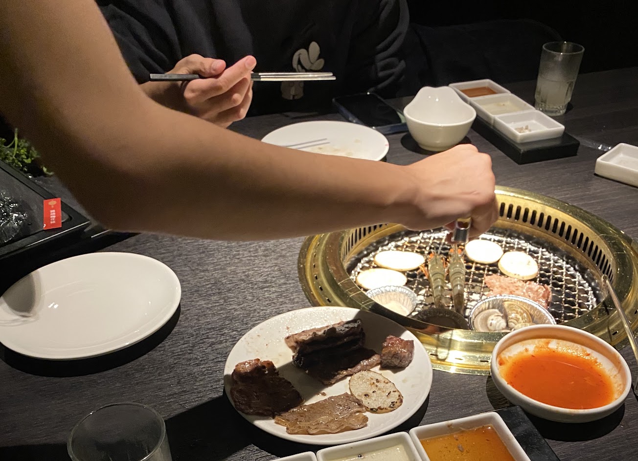 用餐環境整潔,服務人員態度很好、做事很主動:像是烤網就換了五次,盤子也換了三次,還問要不要幫忙烤、幫忙撥蝦(有點嚇到我哈哈哈,我正在摧殘蝦子…)。