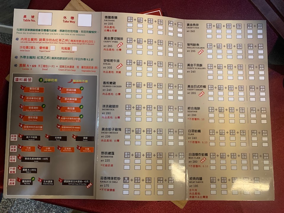 當天是中午後內用,點了紅醬炸蝦跟白醬雞塊,裡面的玉米筍味道吃起來怪怪的感覺放比較久🤨