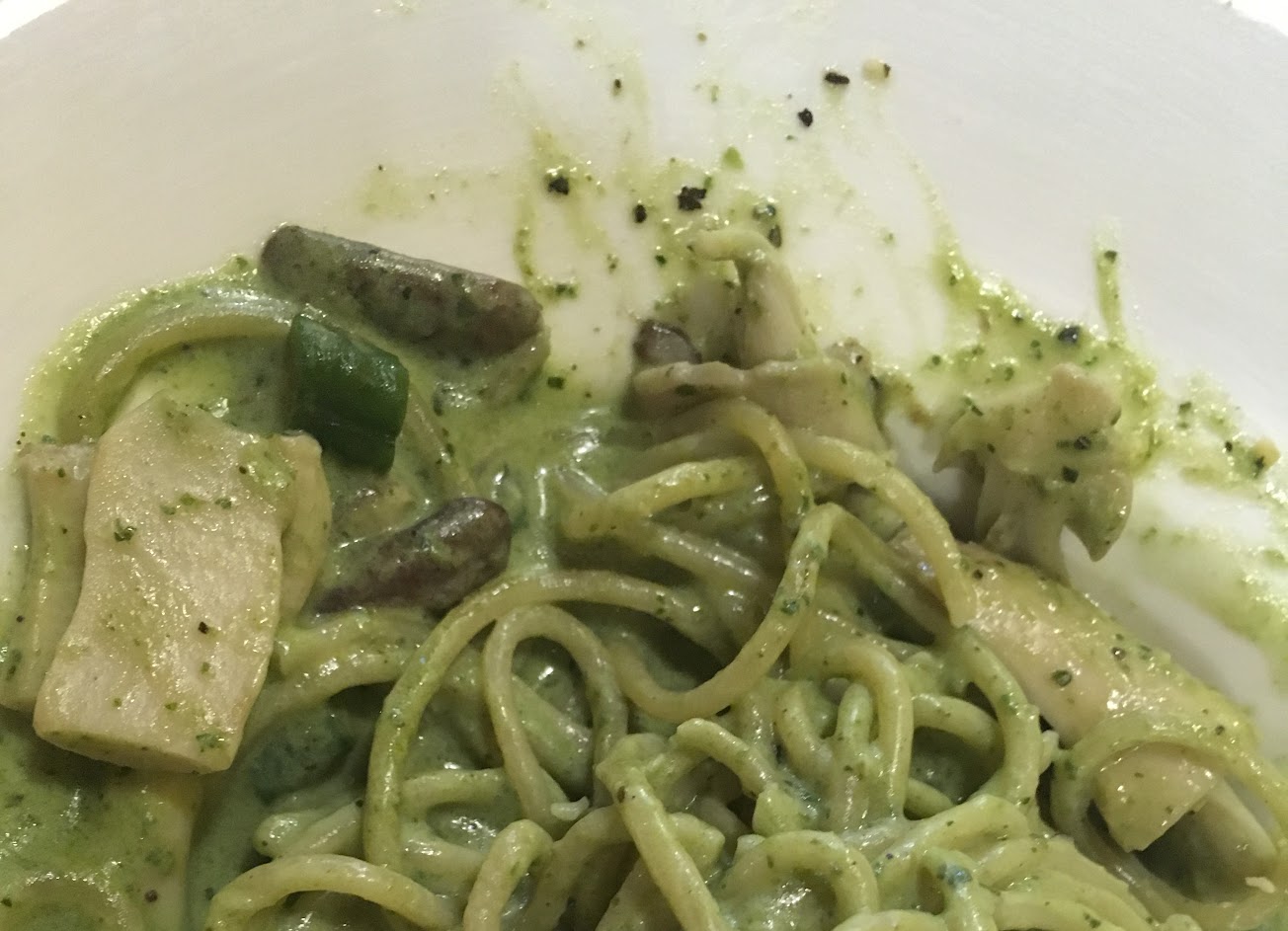 清炒野菇義大利麵:麵本身好吃,可以咀嚼出麵粉香,菇類種類跟數量都不少,希望多一點青菜