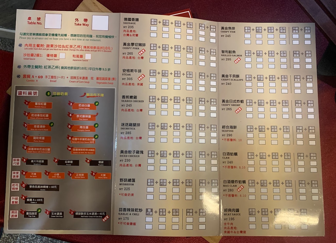 點餐方式是自選醬汁+自選麵條+自選主餐肉品,第一次看到這種畫單方式,蠻新鮮的。來用餐的客群蠻多是親子,也有年輕人、中年人,是符合眾多客層都喜愛的口味。