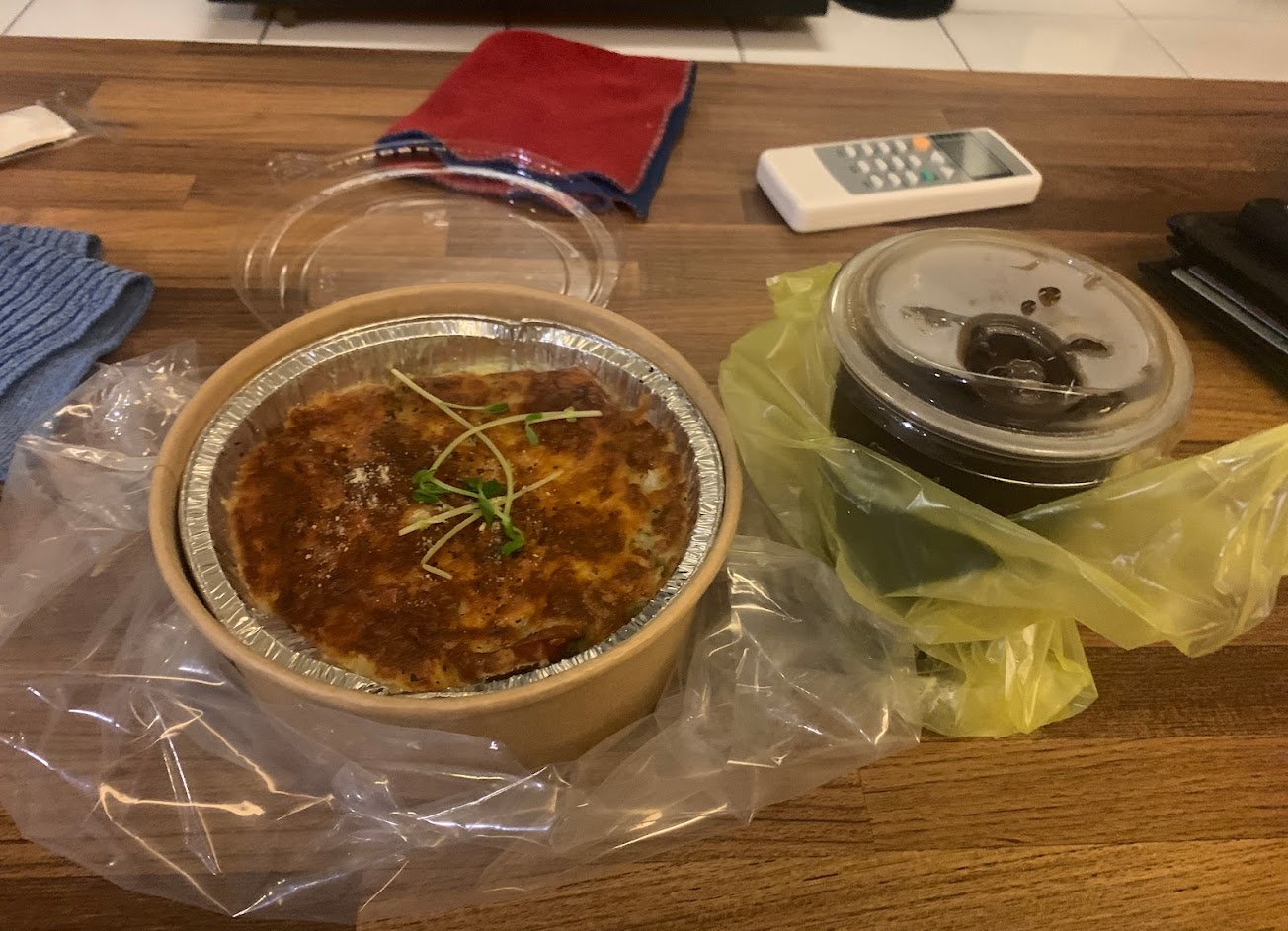 使用外送平台點餐,點了紅醬焗烤麵,吃了第一口發現餐點裡面有橡皮筋,有夠誇張!