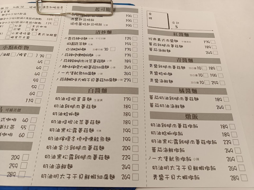 點餐時加選項很多,不加100多,加了平均250左右,覺得有吃到好吃的義大利麵