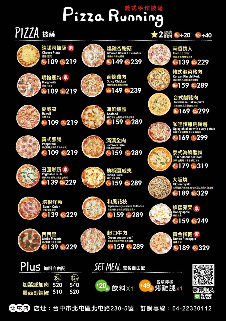 2024最新在地推薦餐廳的菜單_Pizza Running 北屯店的菜單、圖片