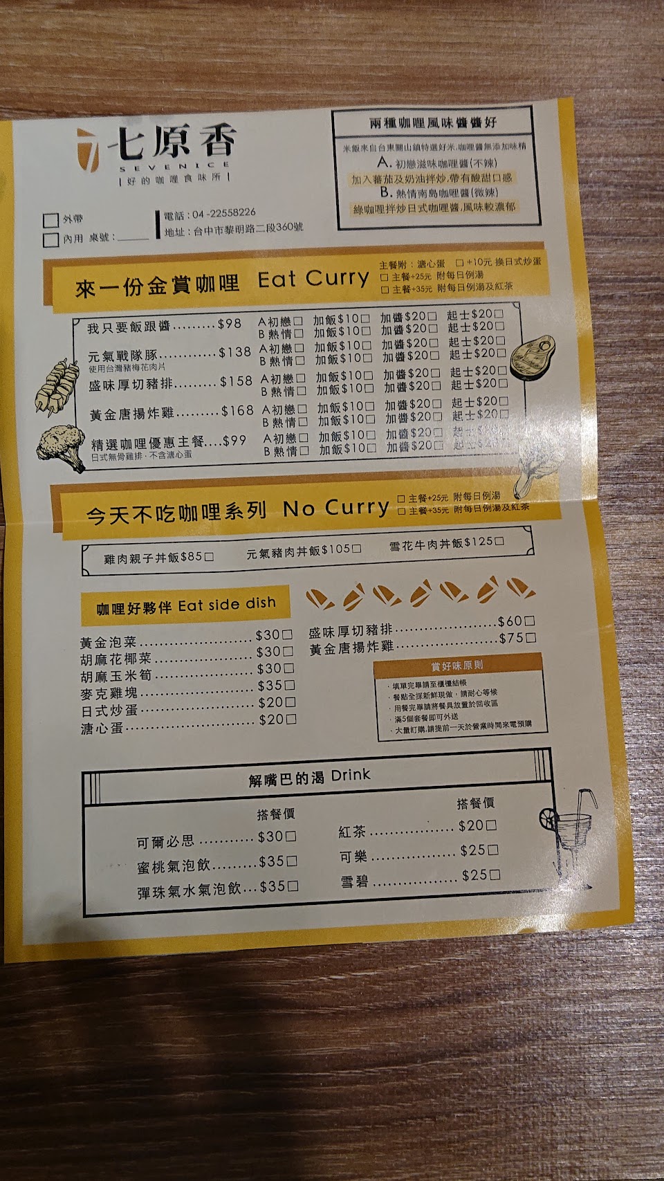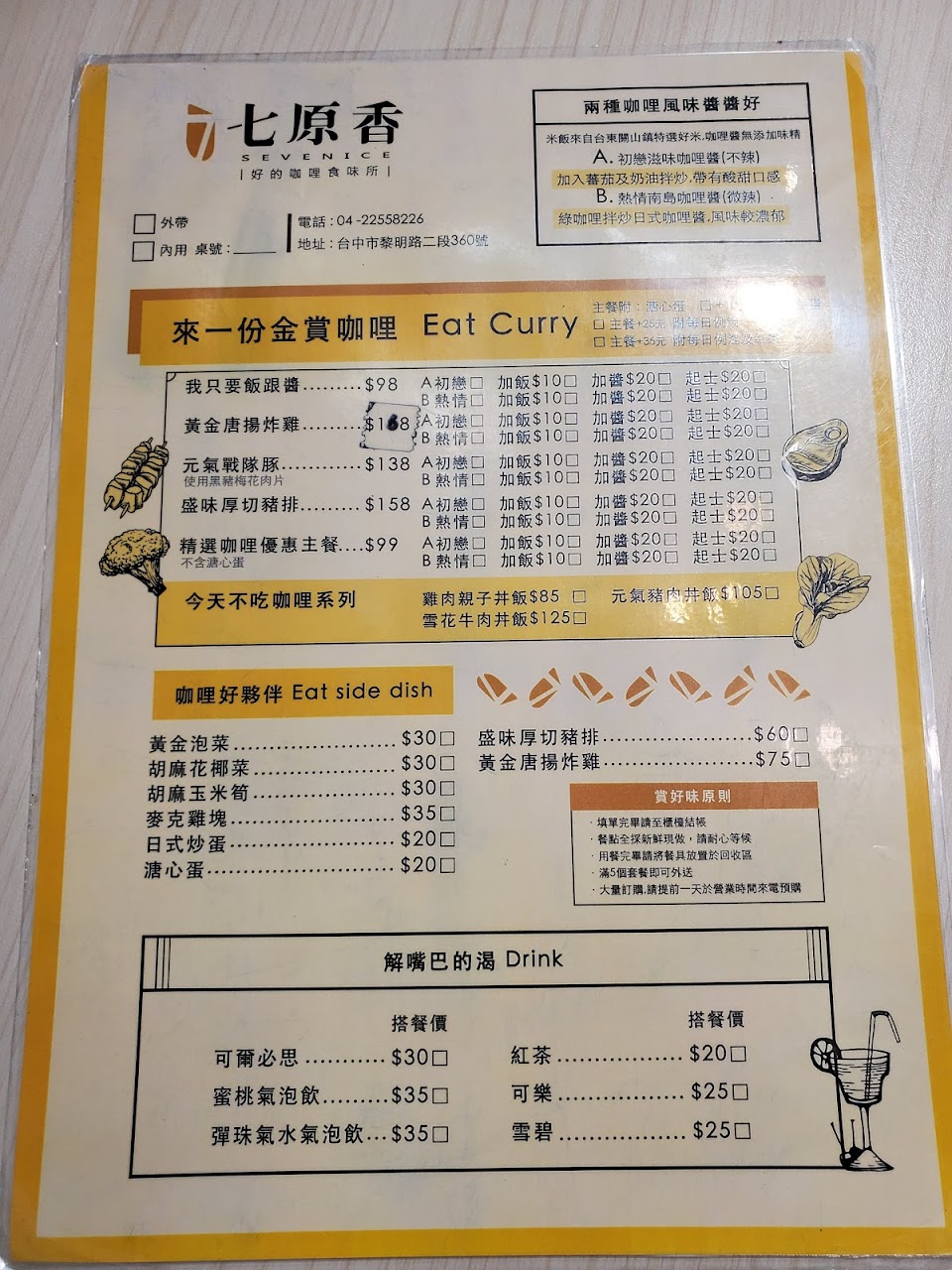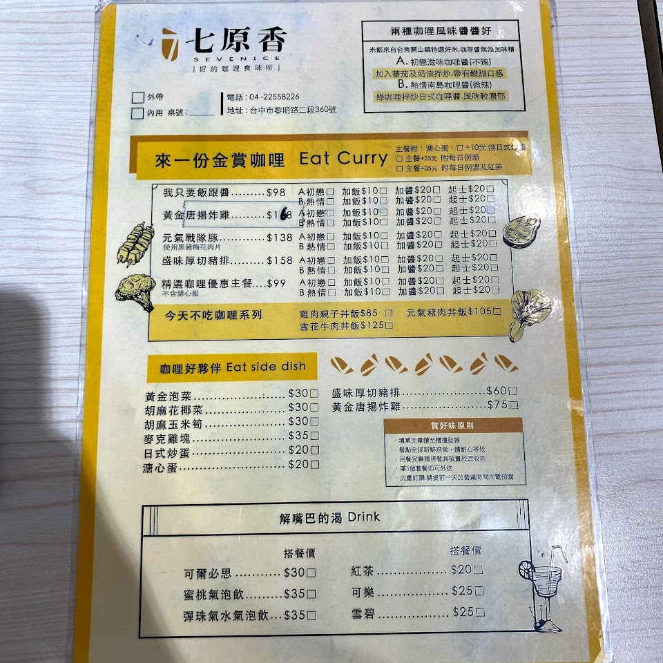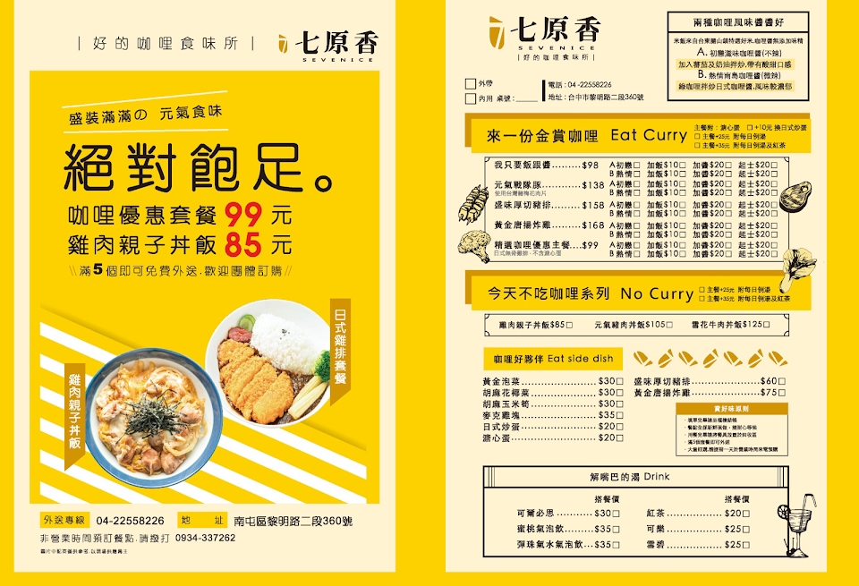 2024最新在地推薦餐廳的菜單_七原香日式咖哩的菜單、圖片