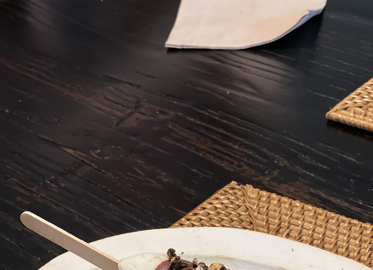 豬軟骨湯帶有香茅的香味,豬肉處理得恰到好,加上微辣的調味喝起來十分順口。甜點則是以外層酥脆的米果,稍甜的榛果巧克力醬,配上外軟內冰的香蕉所製成的可可芭納。