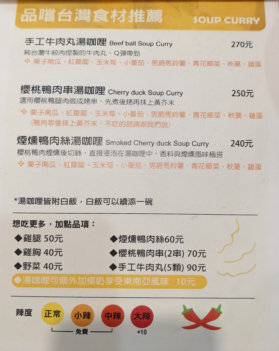 雞腿湯咖哩、百香果優格冰,也很棒?