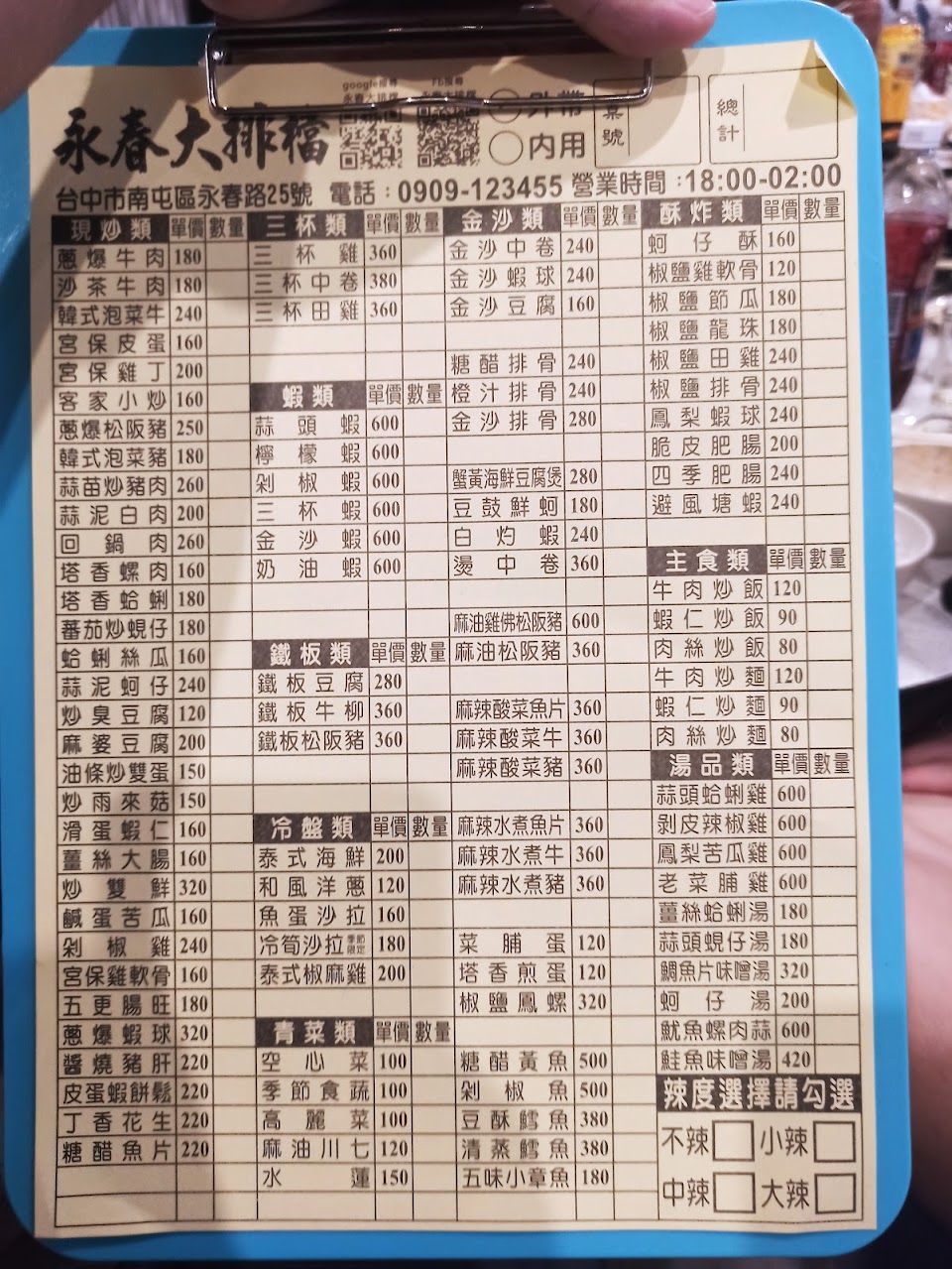 2024最新在地推薦餐廳的菜單_【永春大排檔】台中南屯啤酒熱炒店/南屯宵夜推薦的菜單、圖片