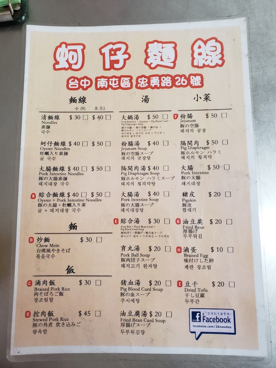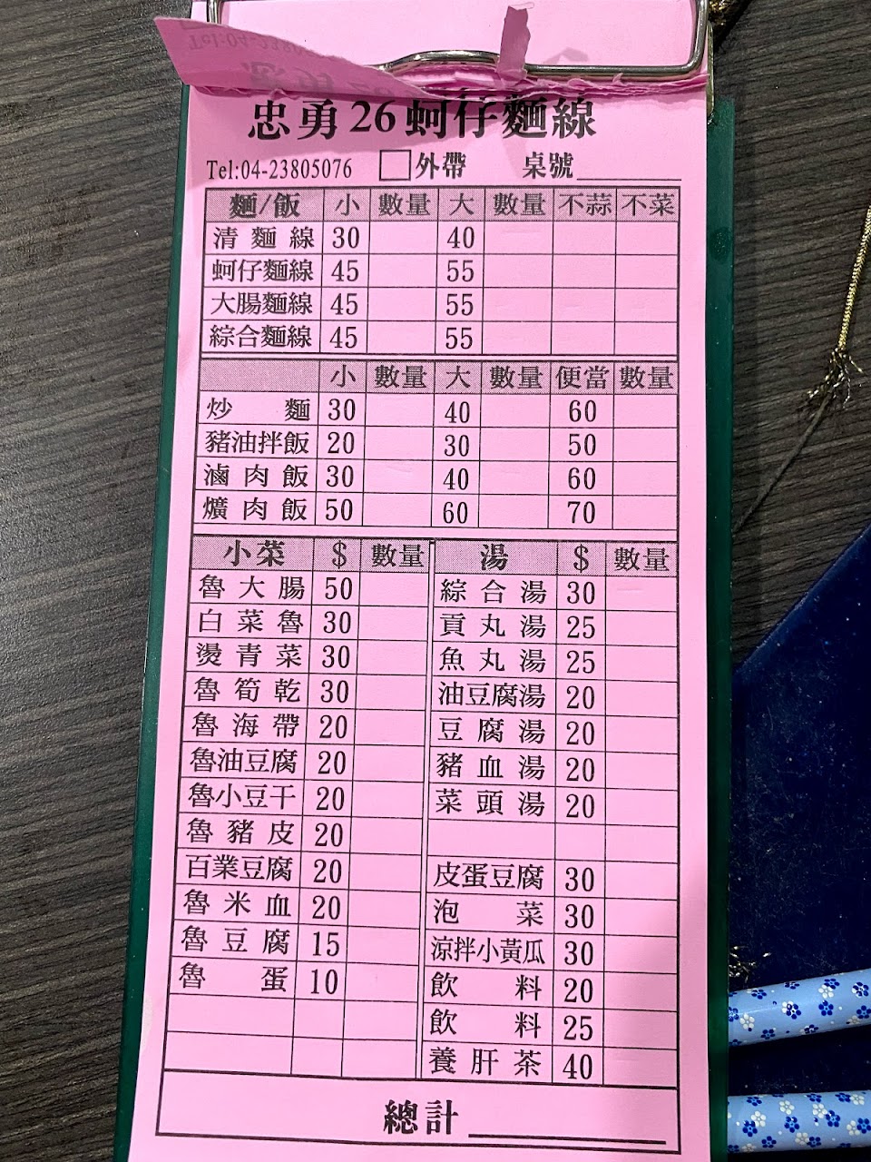 2024最新在地推薦餐廳的菜單_忠勇26大腸蚵仔麵線的菜單、圖片